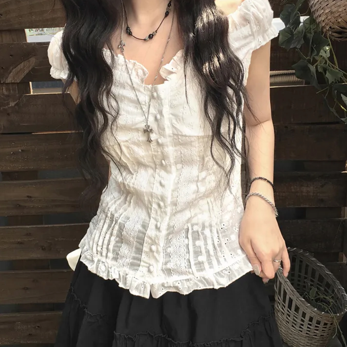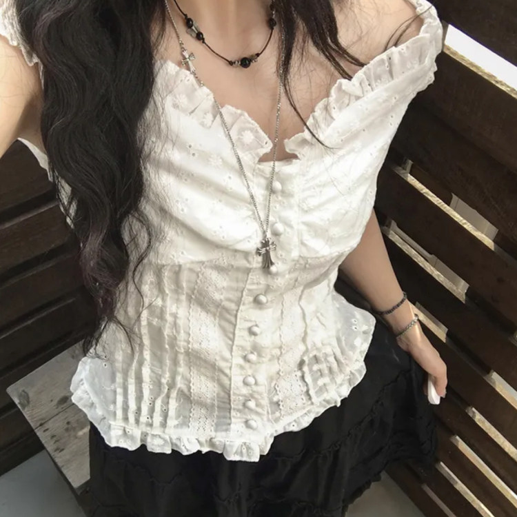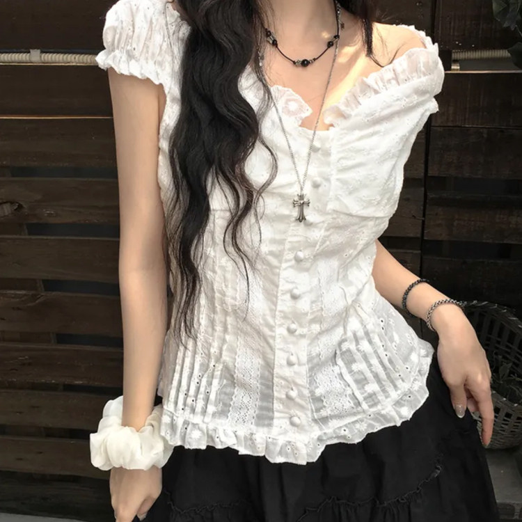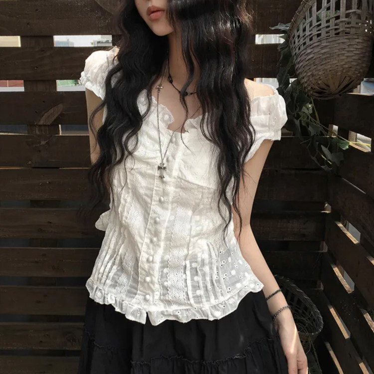 📚 夏日小记 奶油泡泡袖纽扣短袖衬衫 纯欲风法式显瘦百搭白色上衣