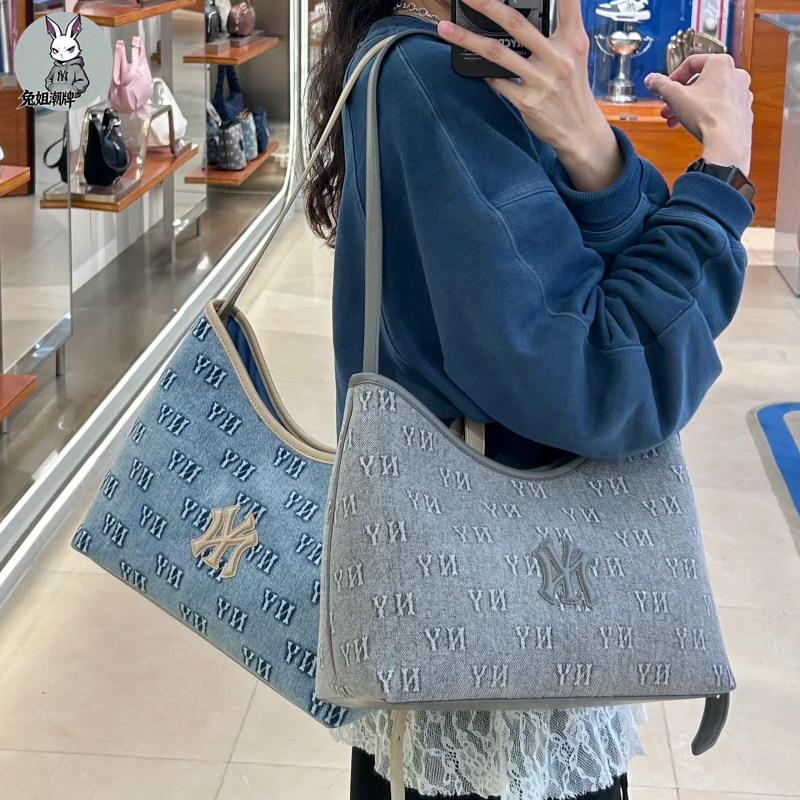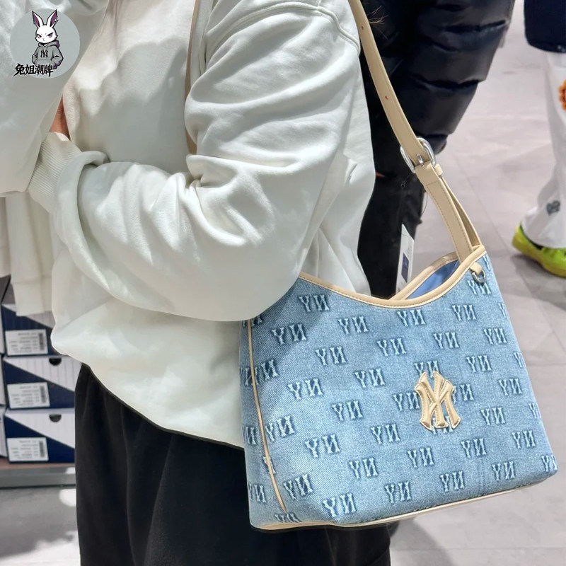 📚 MLB专柜男女NY老花通勤包休闲复古时尚大容量单肩斜挎水桶包BMMD1