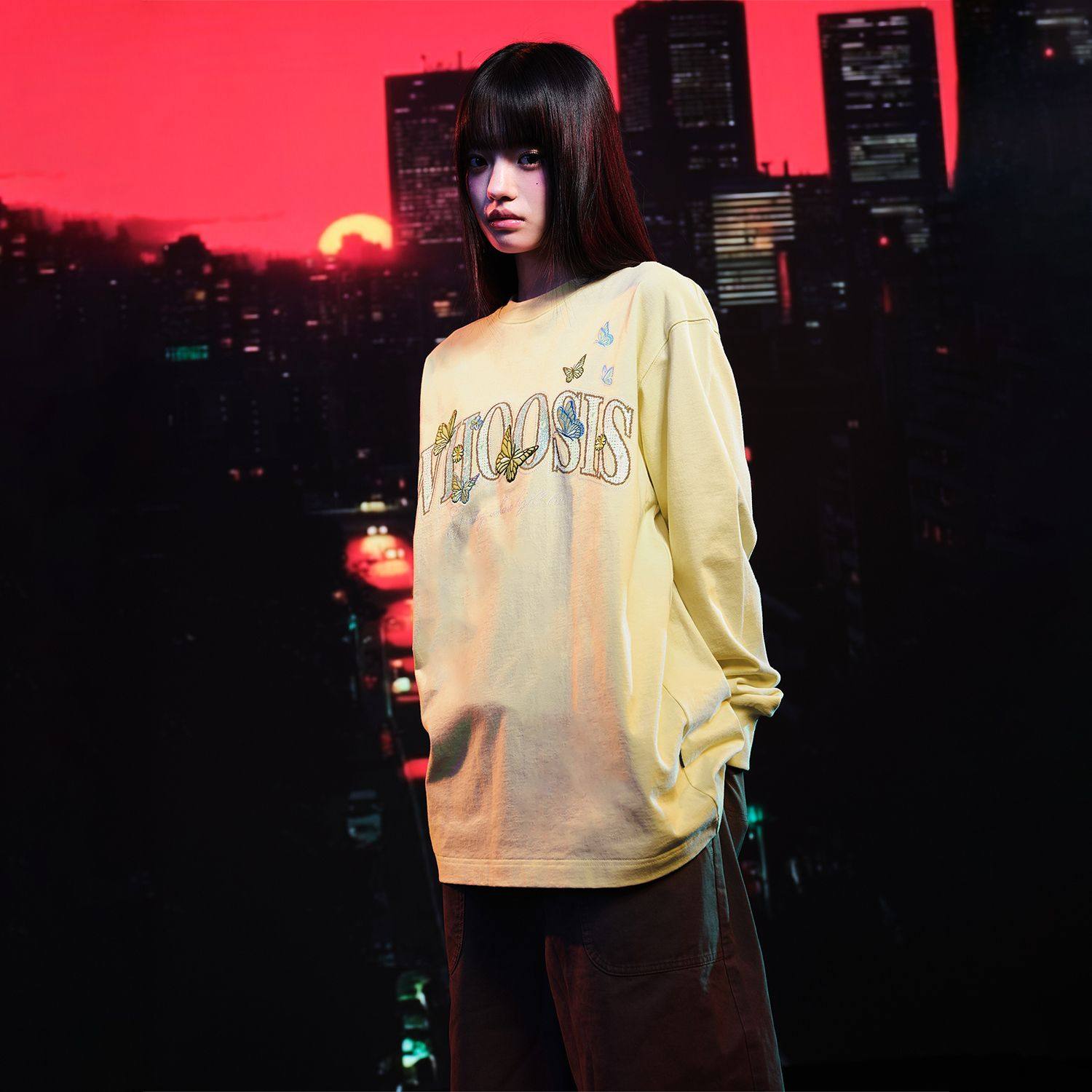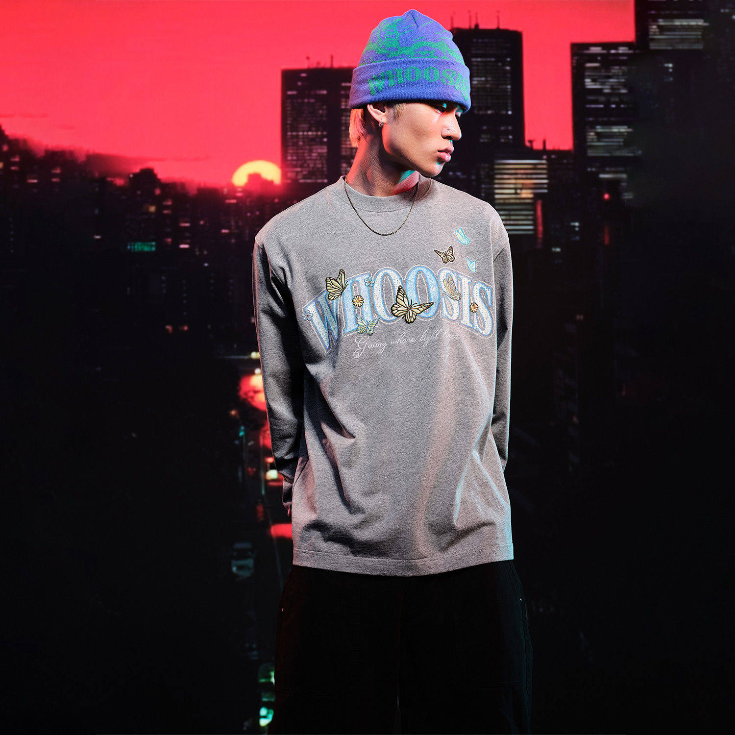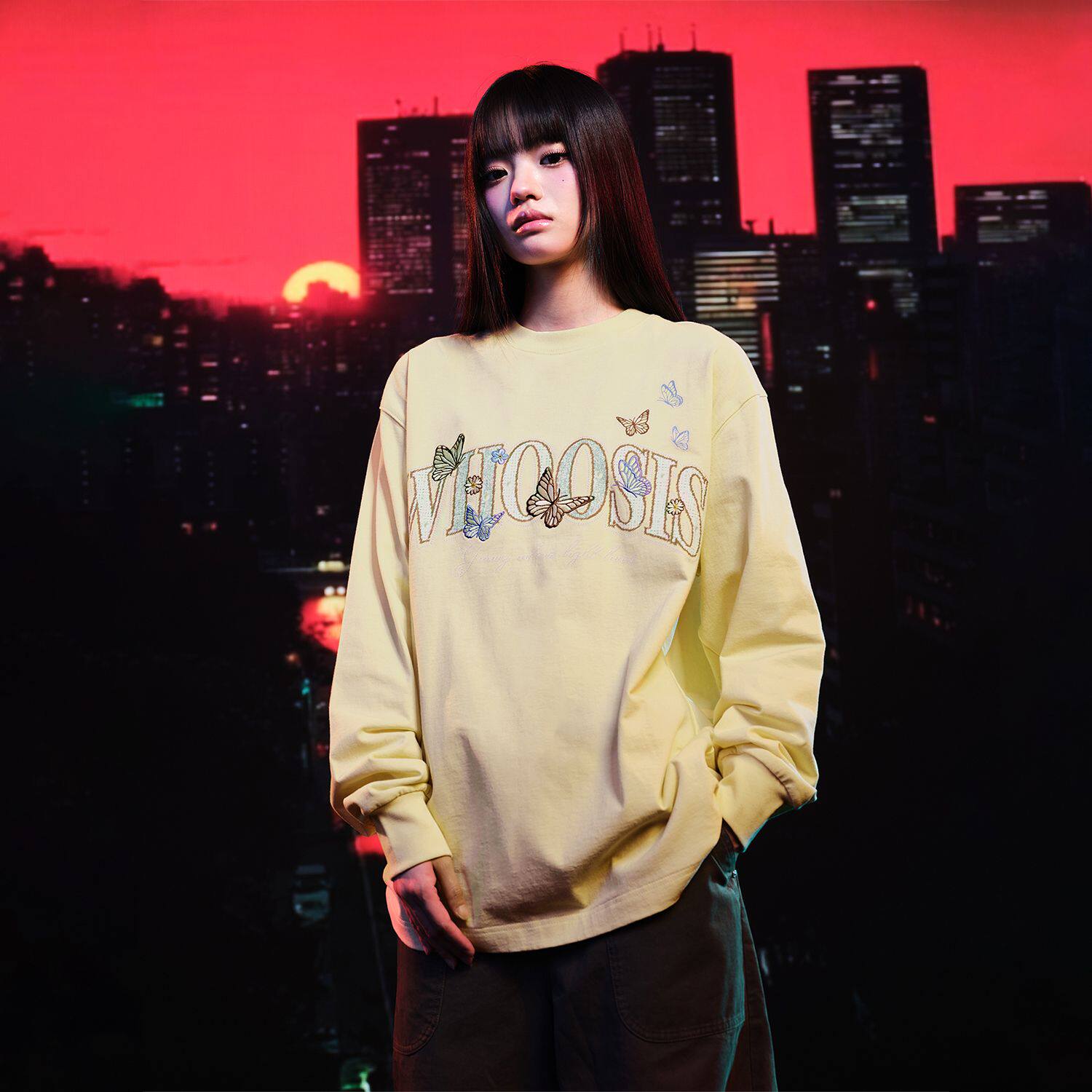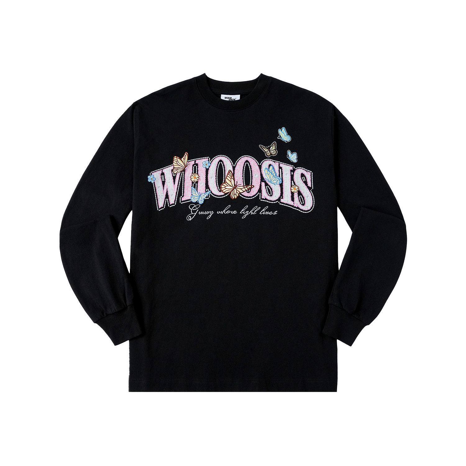 📚 WHOOSIS(不知其名)蝴蝶刺绣长袖T恤重磅休闲男女秋季简约情侣潮