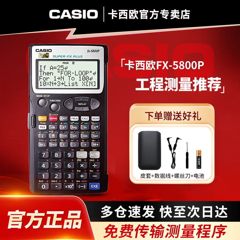 📚 CASIO卡西欧官方旗舰正品FX-5800P工程测量高效编程计算器fx5800p房建道路测绘土木桥梁专业计算机送程序教程