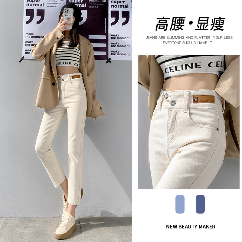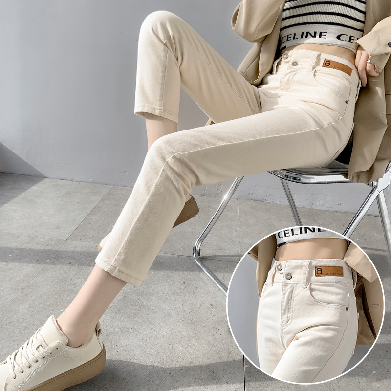 📚 卡其色窄版直筒牛仔裤女秋冬加绒145小个子八分高腰显瘦烟管裤子8