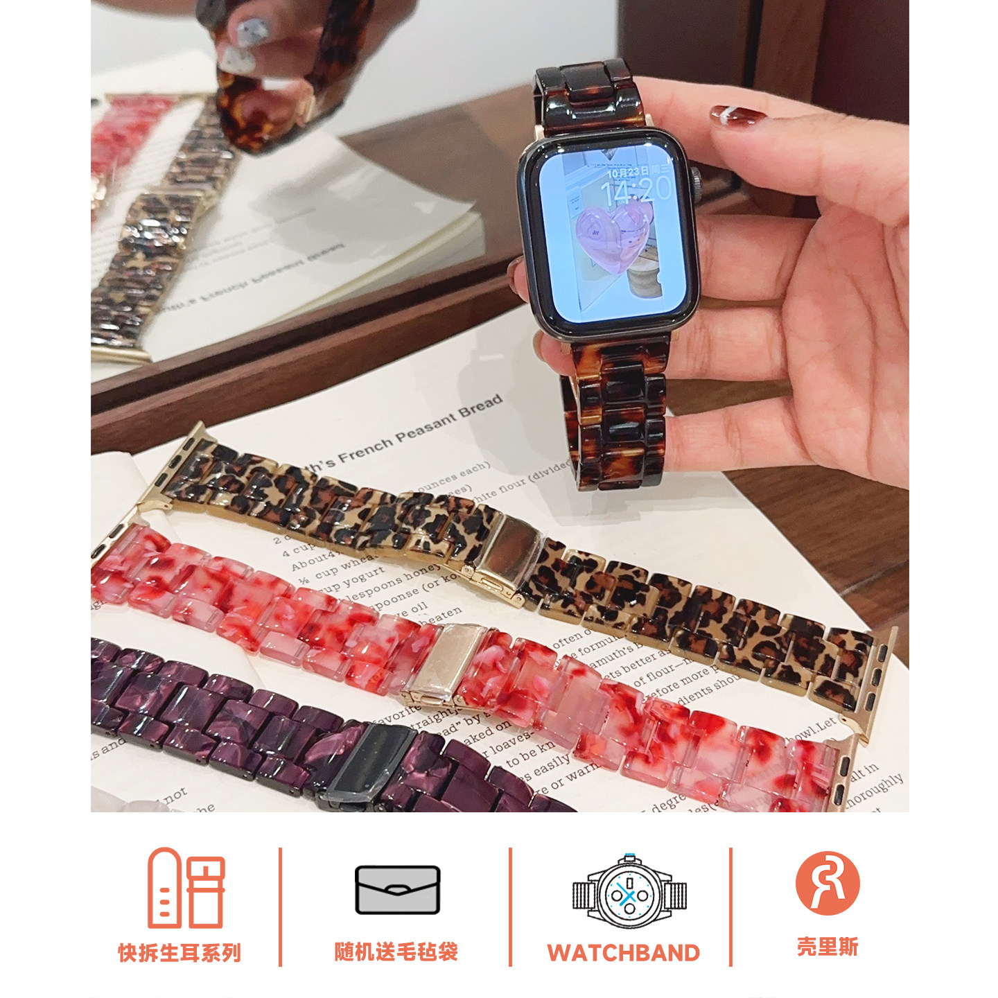📚 壳里斯GT6表带琥珀玳瑁树脂链条表链Fit4小众新款GT5贝壳纹适用GT3华为watch4pro小米8/9pro红米5手表GT4荣耀