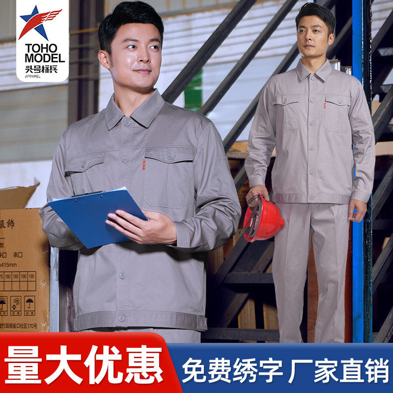 📚 头号标兵夏季纯棉工作服套装男长袖薄款耐磨汽修厂车间长袖劳保服