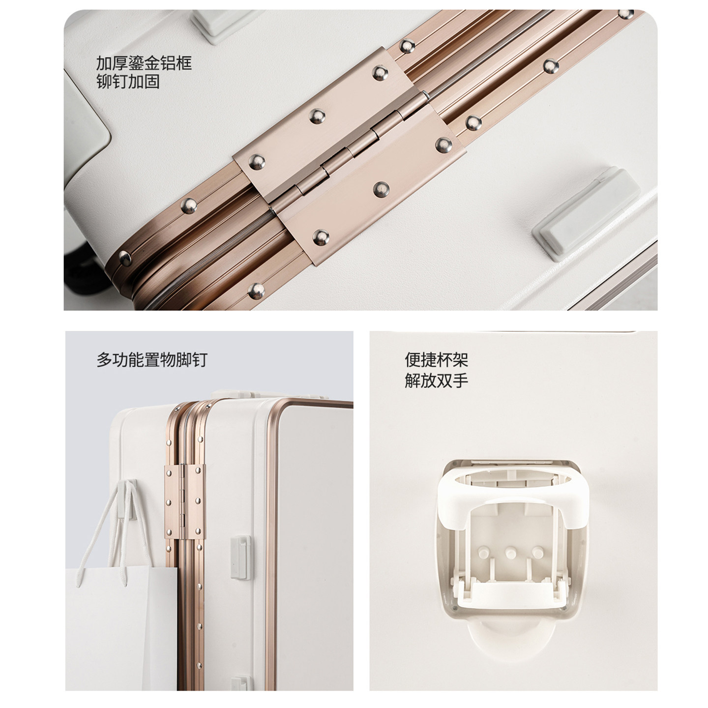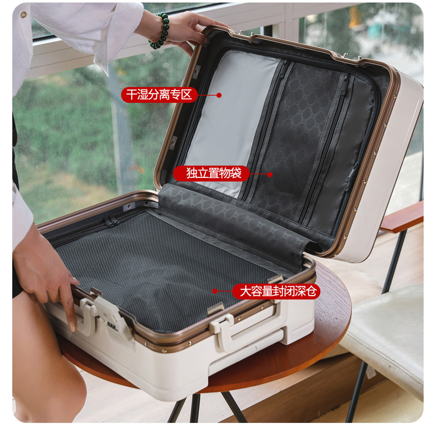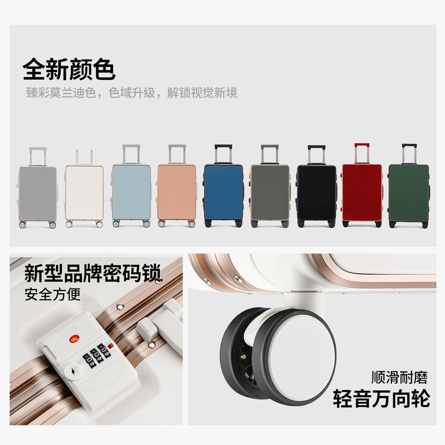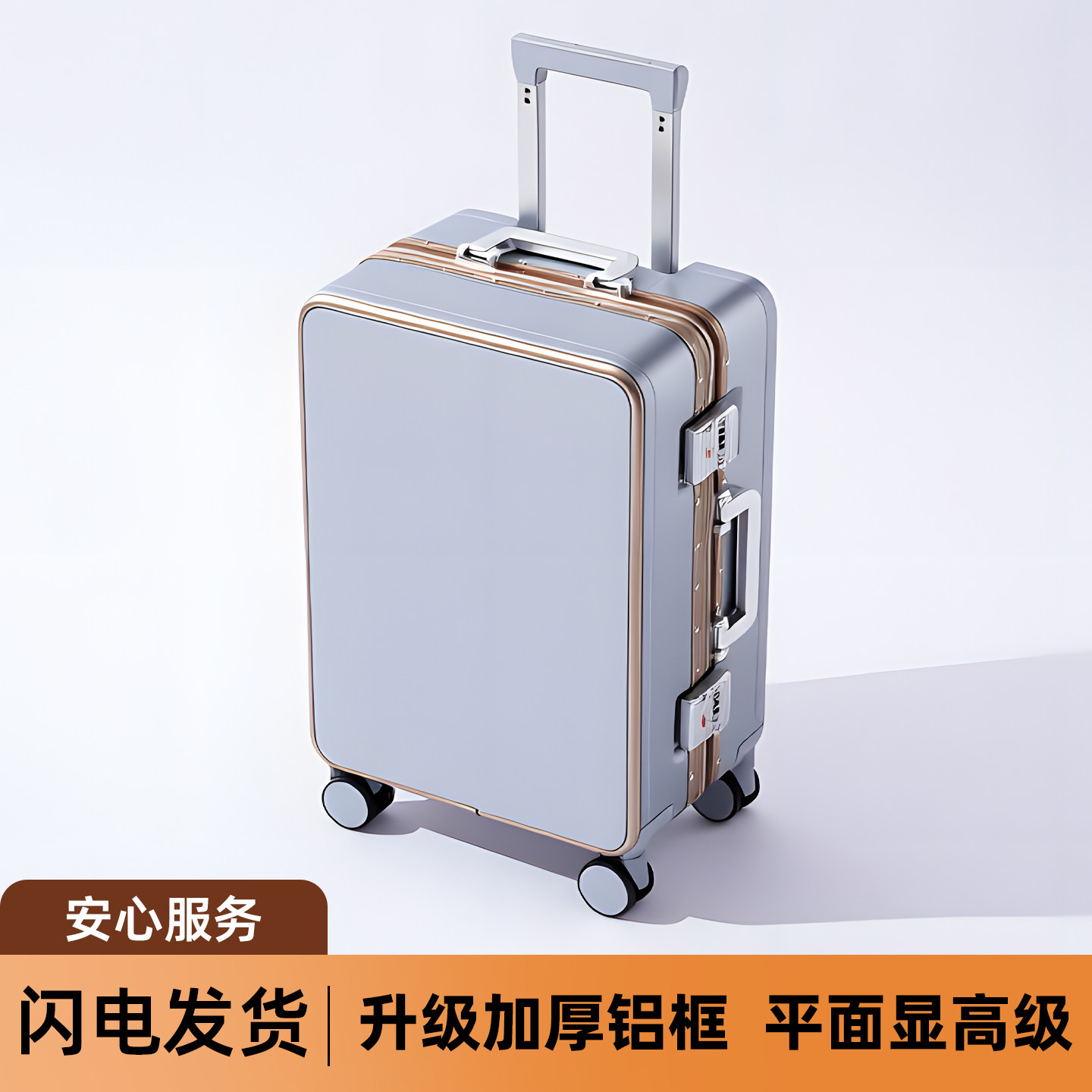 📚 浅灰色双封闭内衬行李箱20寸旅行密码箱万向轮拉杆铝框26寸大容量