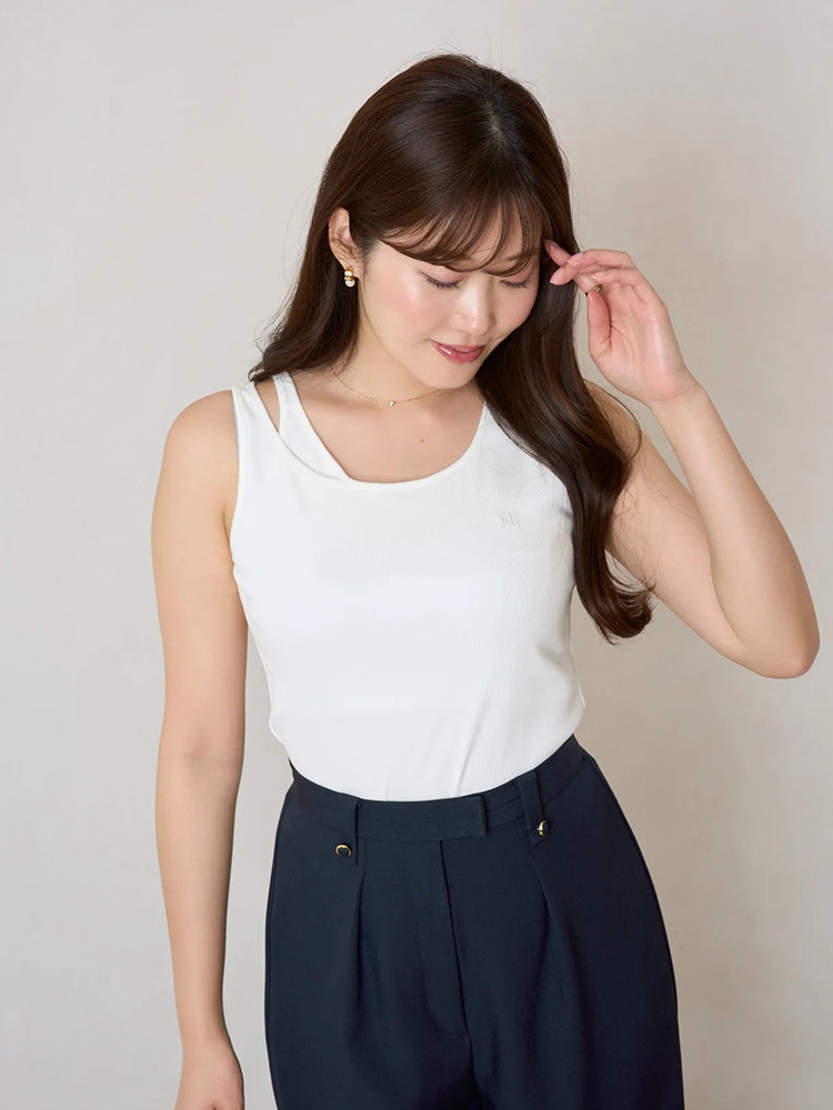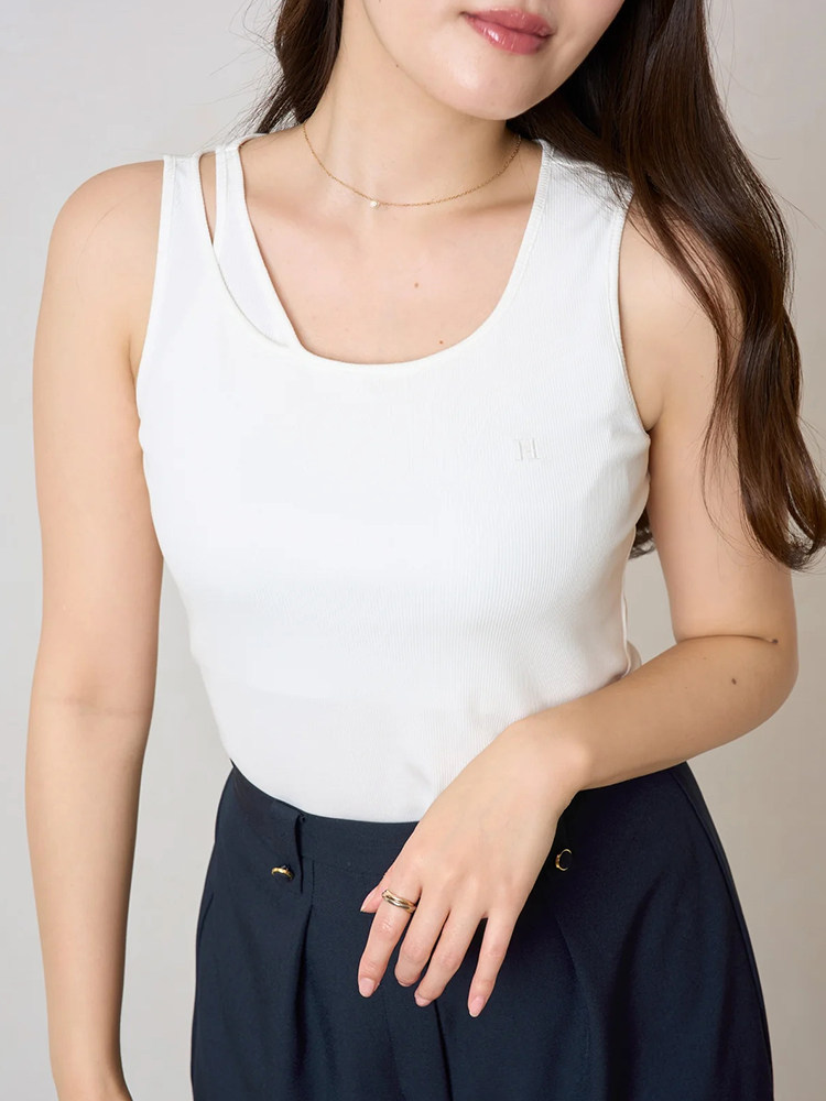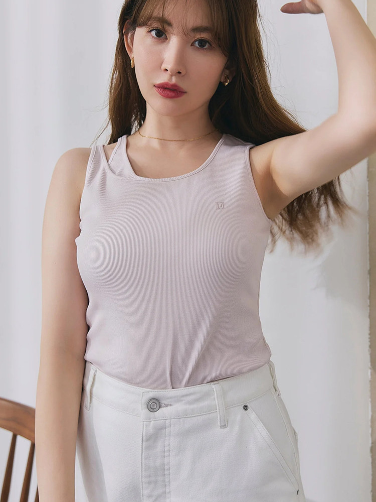 📚 獨家娘娘her元 棉混Logo刺绣舒适罗纹百搭单肩双肩带吊带背心