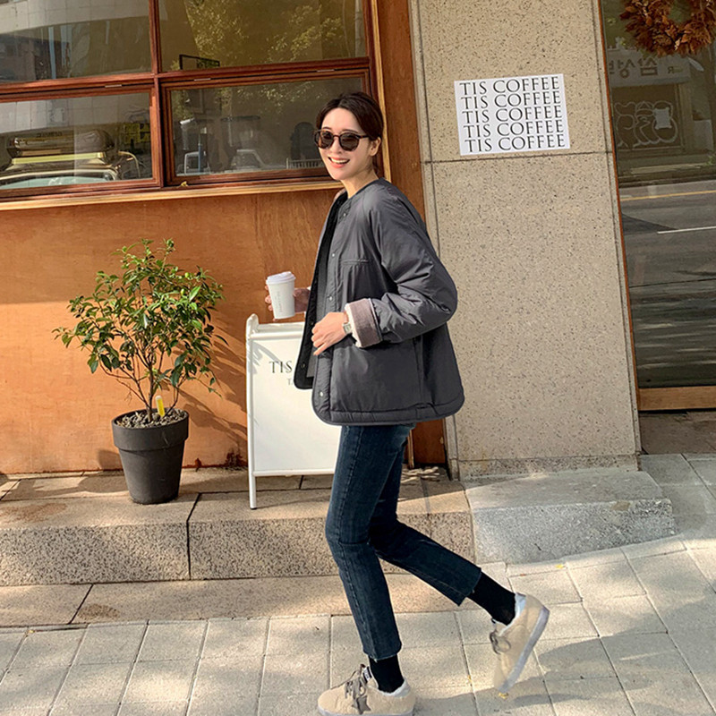 📚 韩国女装新羊羔绒内里保暖宽松秋冬女长袖棉服外套防泼水风衣D34