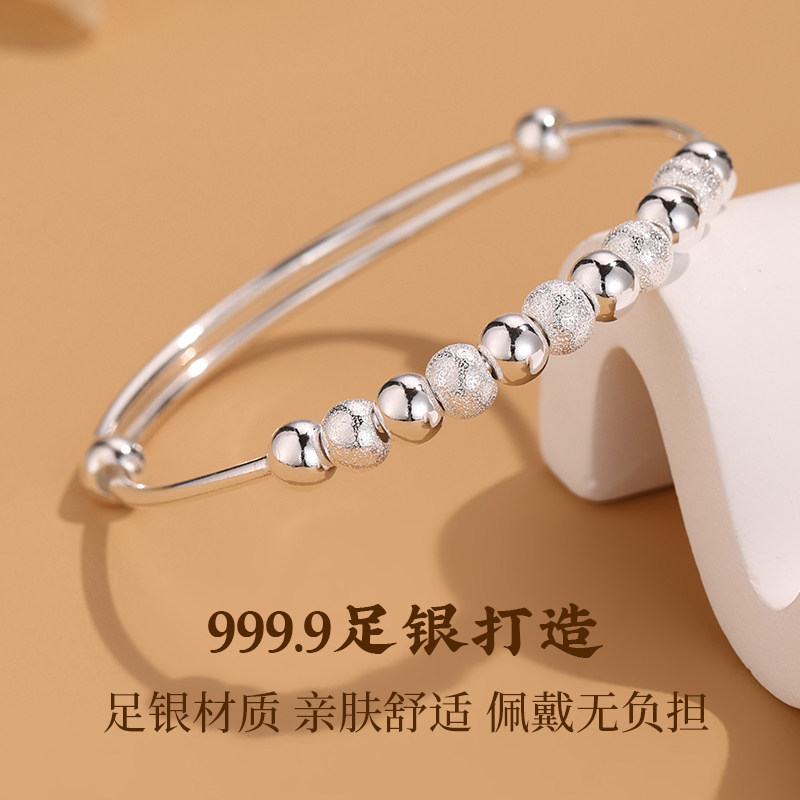 📚 【志同珠宝】足银转运珠银手镯女小众设计感推拉银镯高级百搭手饰