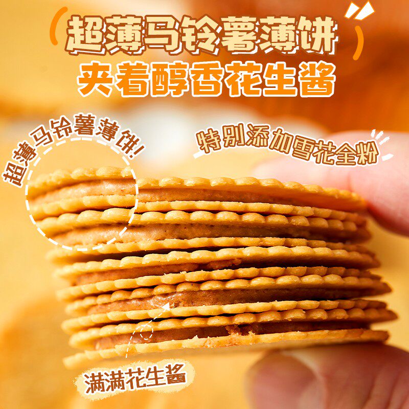 📚 250g榛子花生酱夹心薄脆饼干马铃薯饼干解馋休闲薄酥脆网红小零食