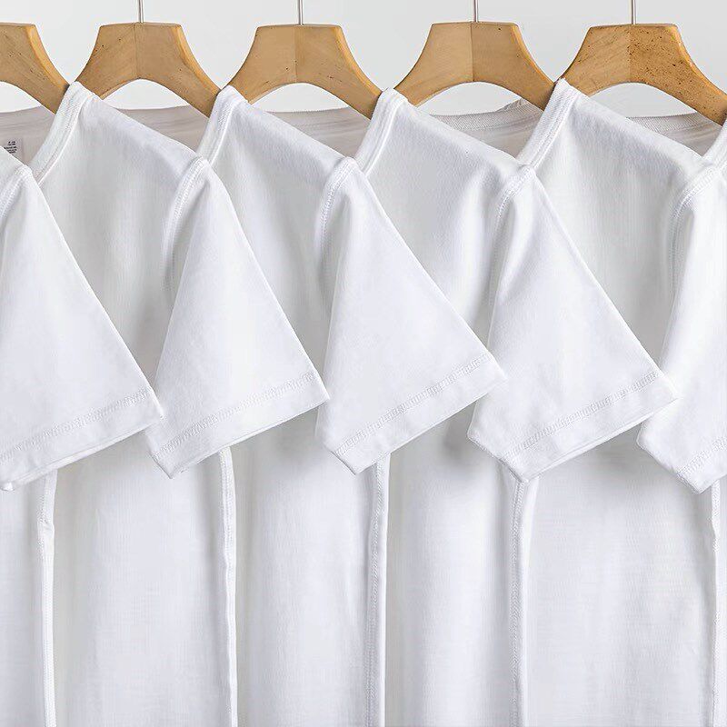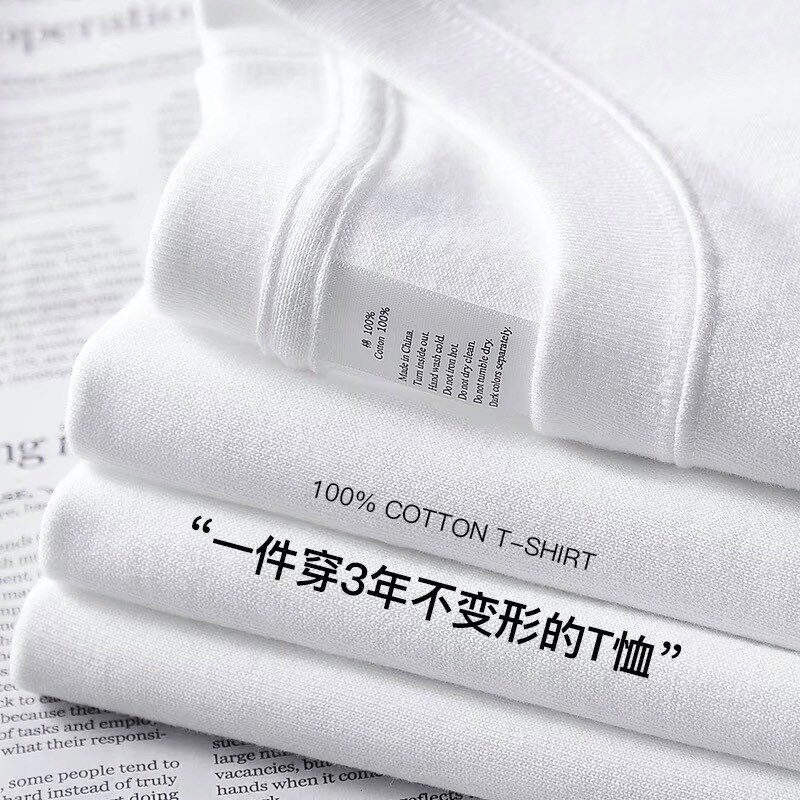📚 美式重磅320g厚实不透男女款夏季宽松大码纯棉情侣纯白短袖T恤