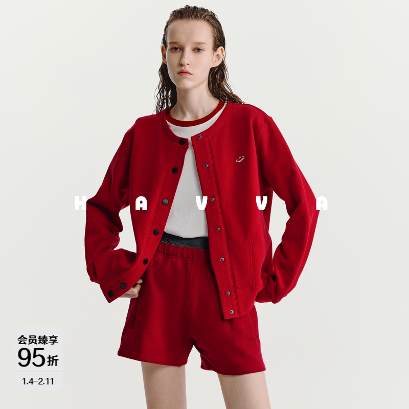 📚 HAVVA【红运好运新年系列】短款卫衣外套女士开衫2026春季W3-3756