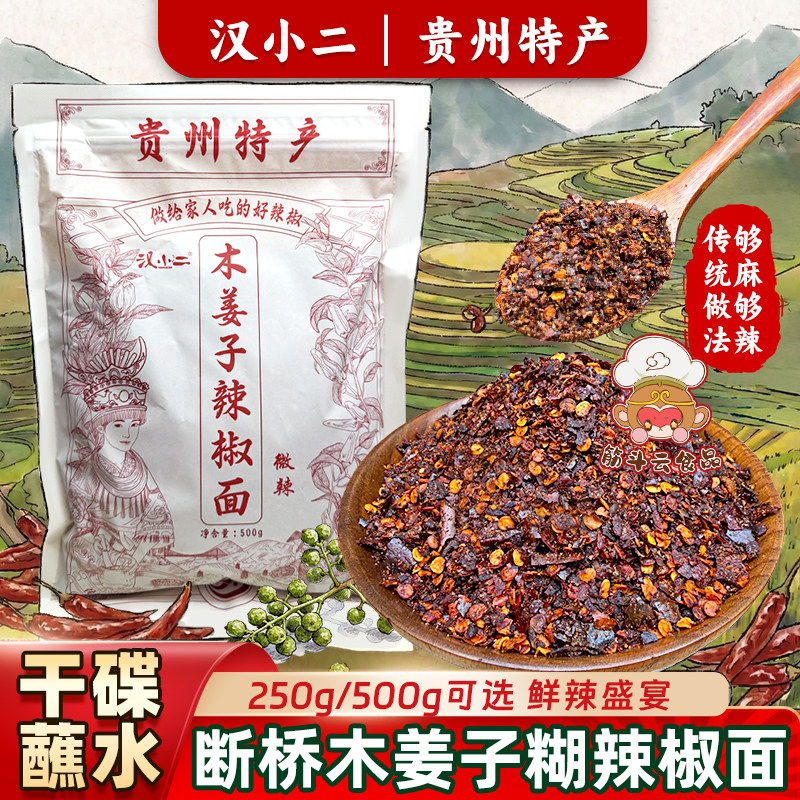 📚 贵州汉小二鲜花椒辣椒面烧烤料断桥木姜子柴火糊辣椒干碟蘸水烙锅