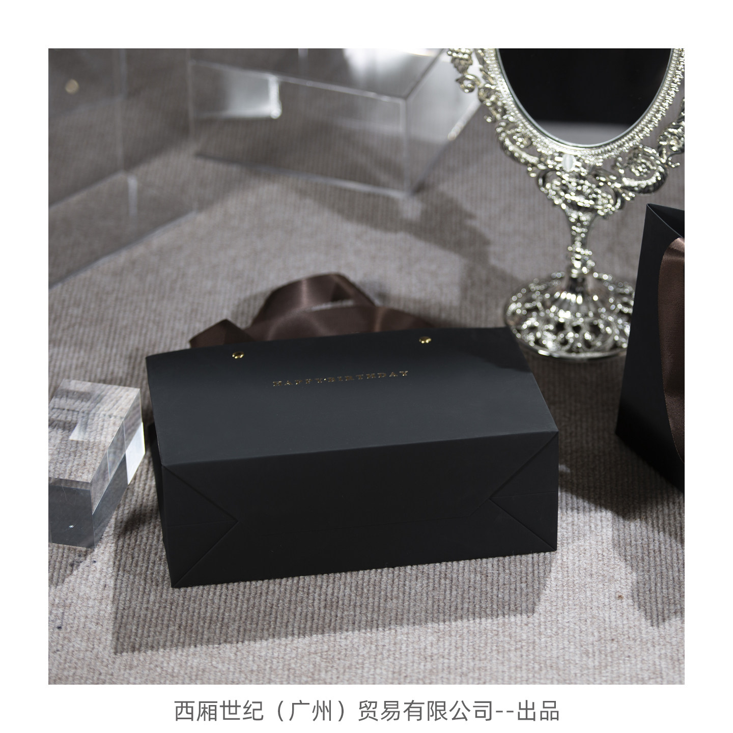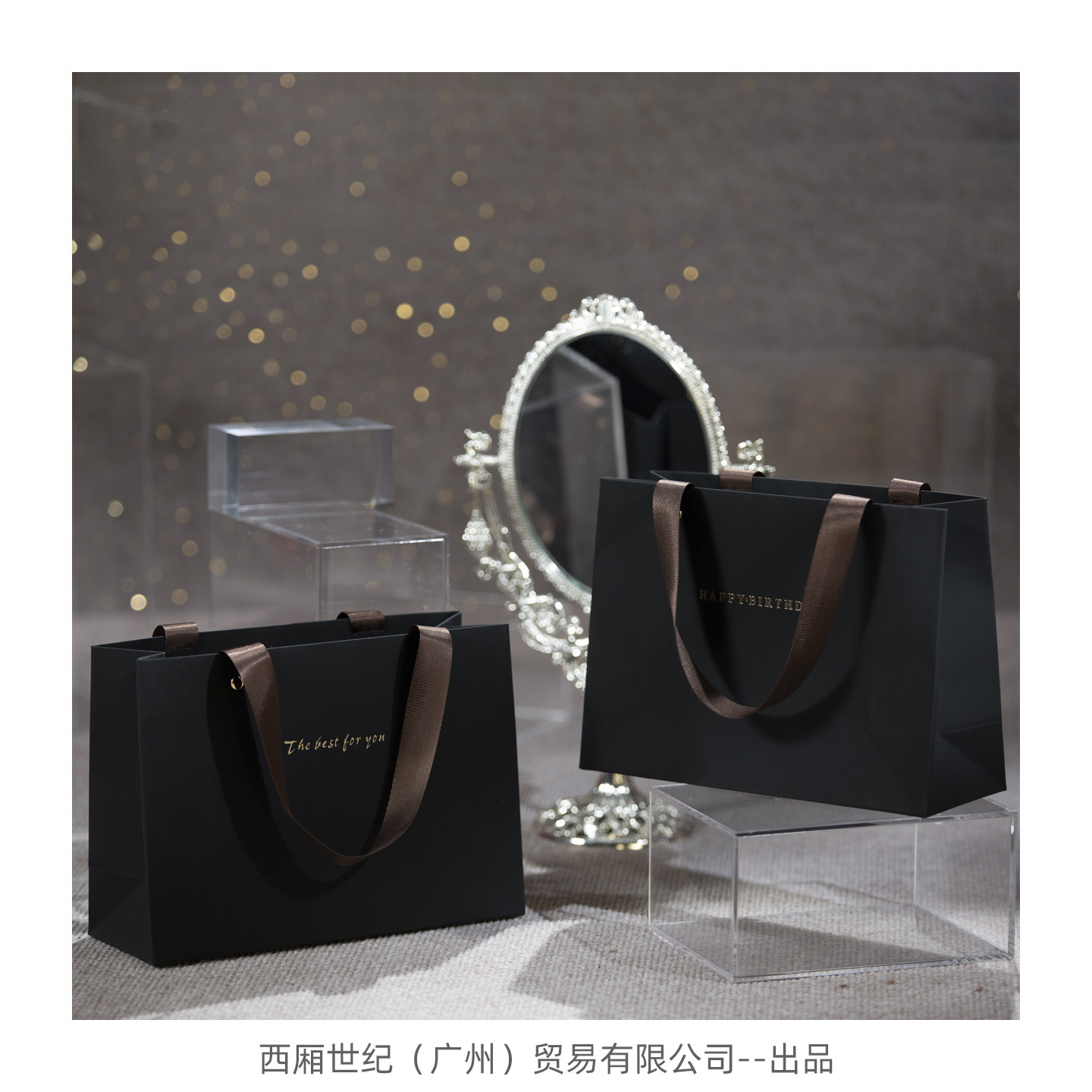 📚 ins风磨砂高级感触感纯黑特种纸手提购物纸袋生日圣诞礼品礼物袋