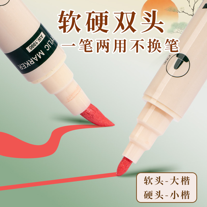 📚 丙烯马克笔美术书法专用彩色秀丽笔软头小楷双头白色画画笔儿童小学生绘画水彩笔幼儿园高颜值diy单支涂色笔
