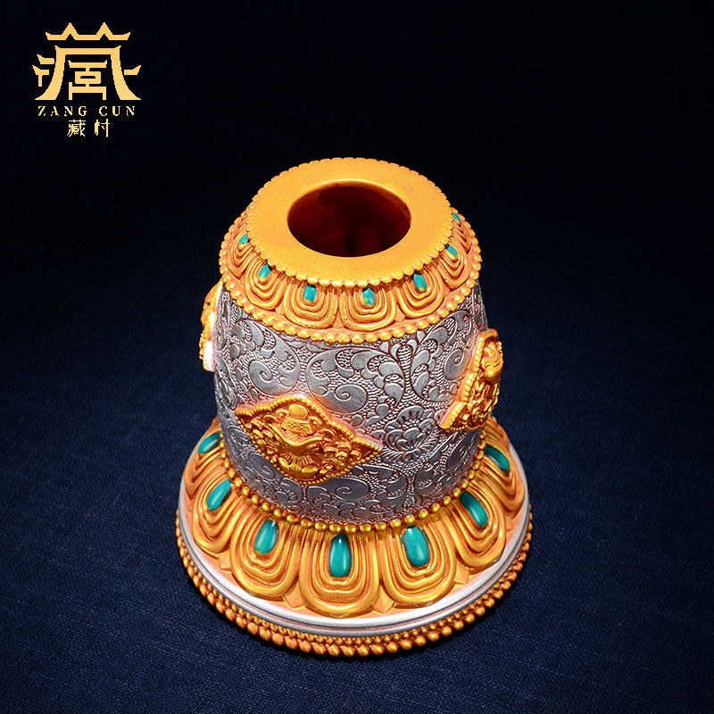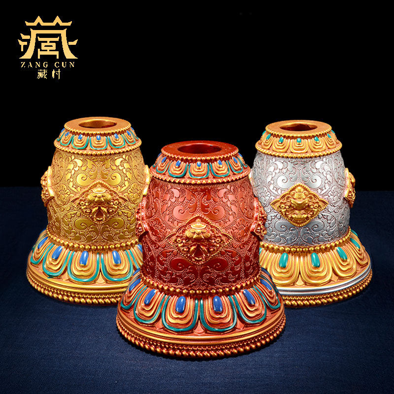 📚 藏村家用八吉祥转轮底座摆件树脂彩绘雕花手摇底座桌面转筒底座