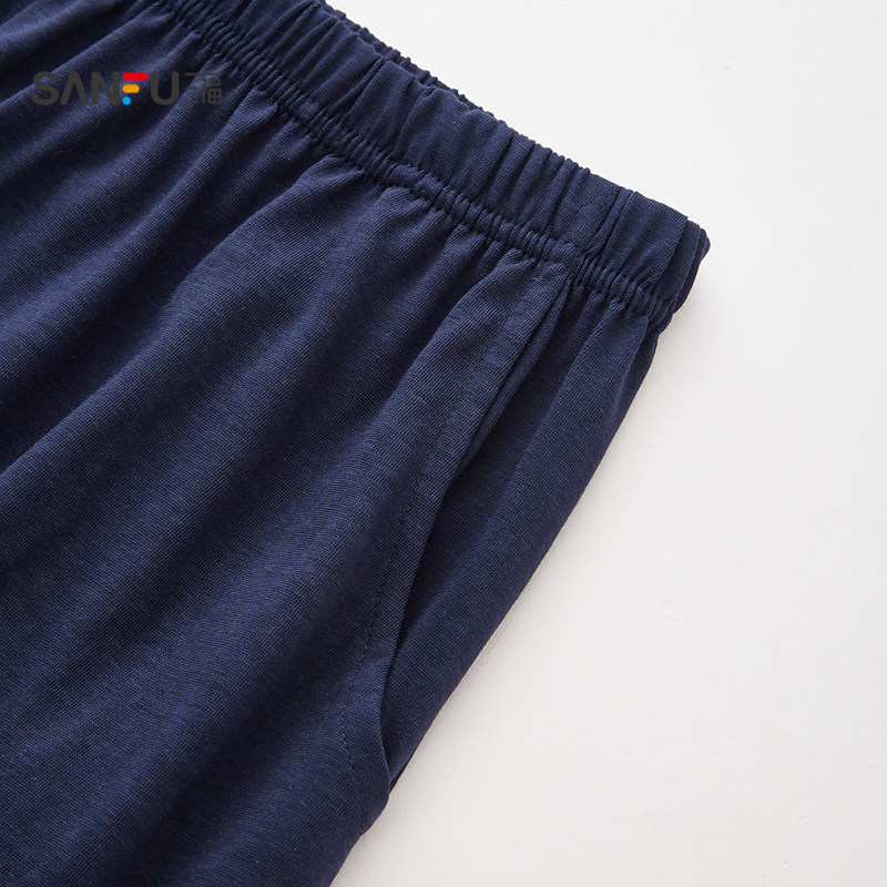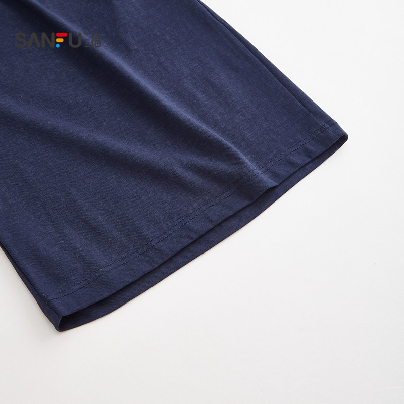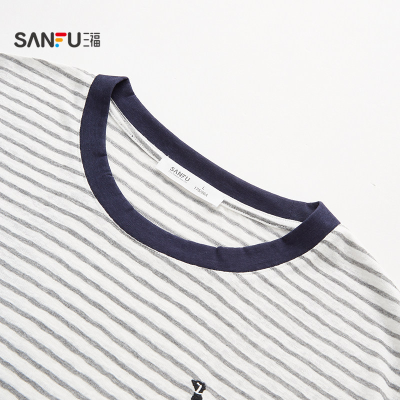 📚 三福男款家居服春夏季条纹刺绣睡衣套装趣味宽松休闲短袖居家服男