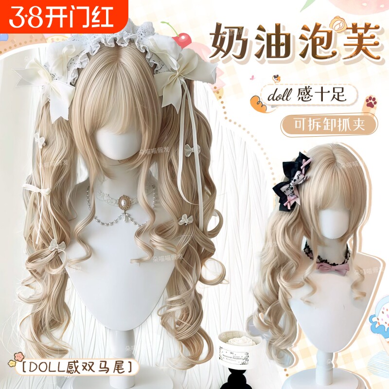 📚 【奶油泡芙】Lolita金色假发女罗马卷双马尾洋娃娃假发套