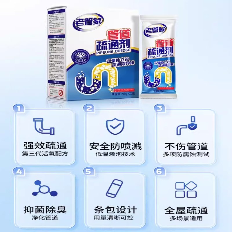 📚 老管家管道疏通剂通下水道强力疏通剂除臭去异味厨房油污强力溶解