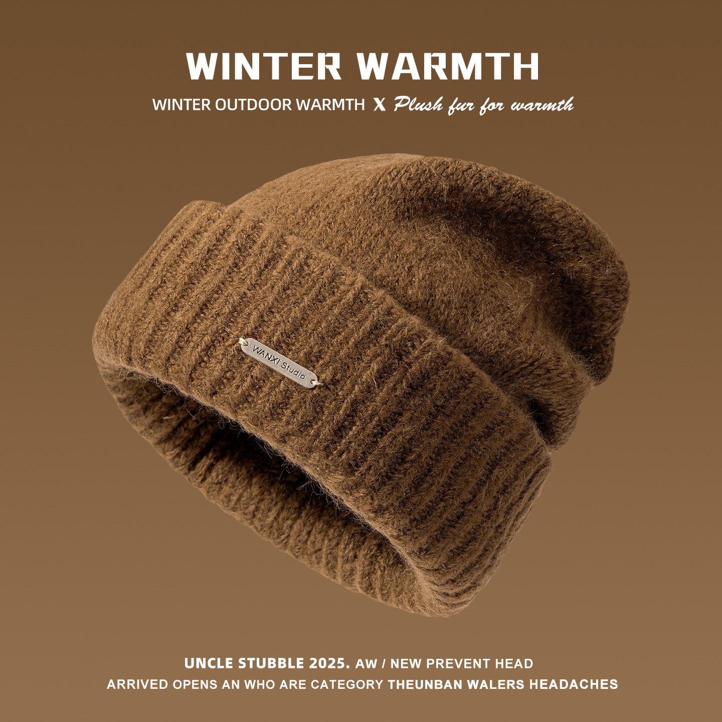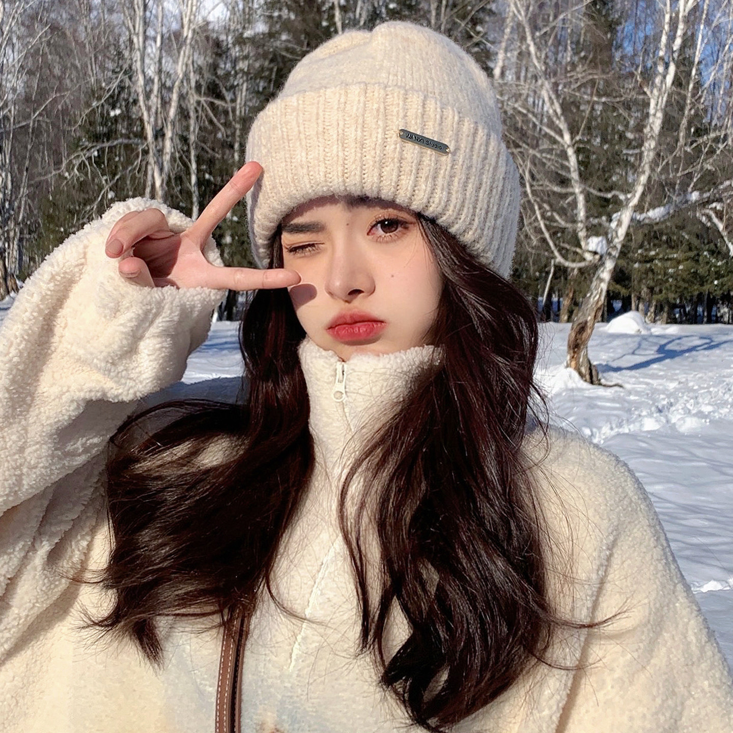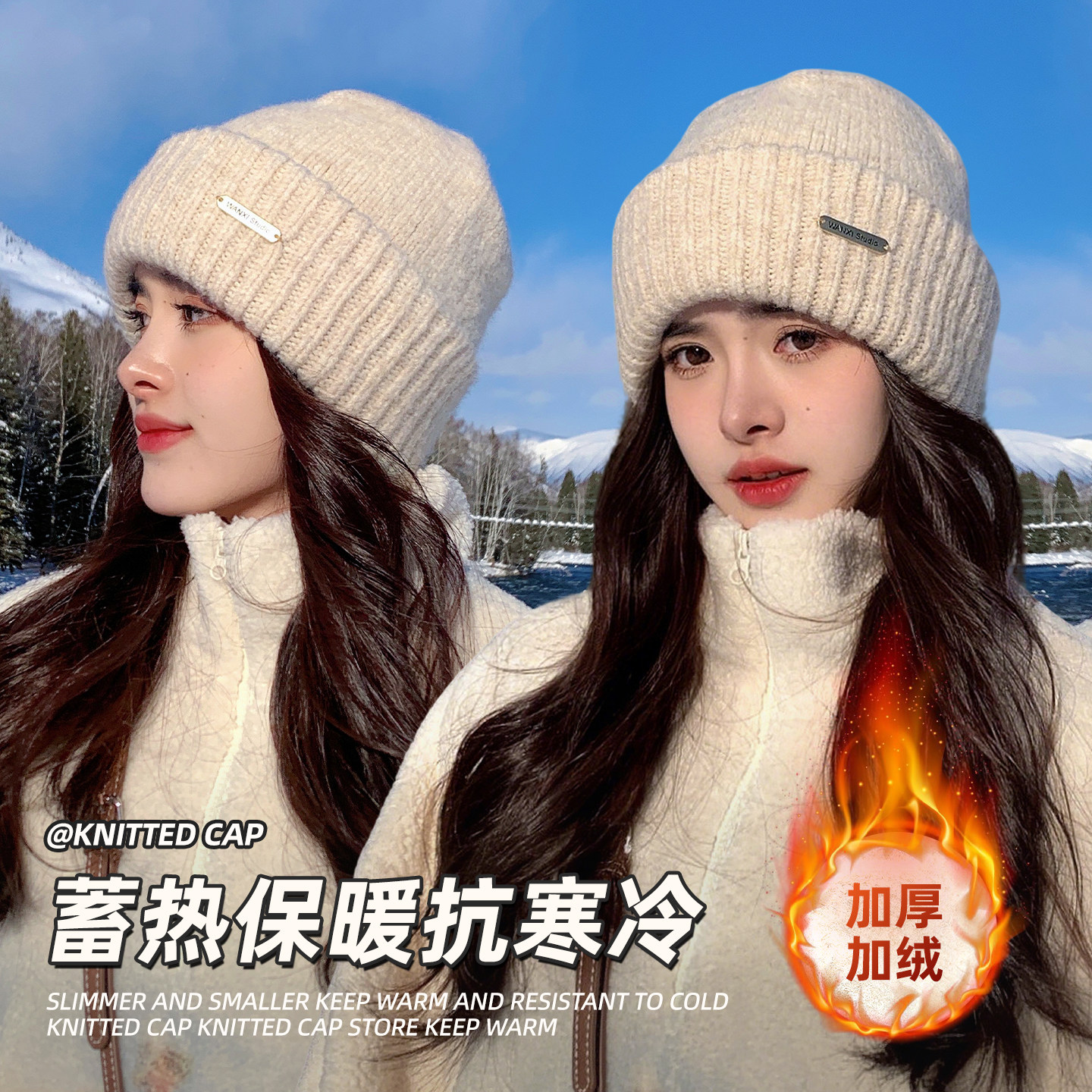 📚 帽子显脸小适合方圆脸慵懒风毛线帽配大衣百搭针织帽大头围秋冬
