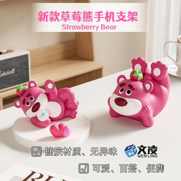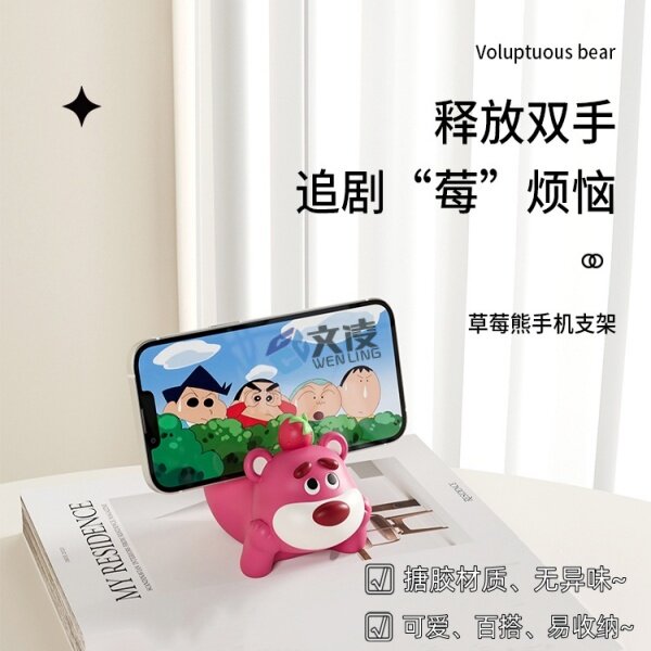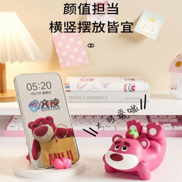 📚 草莓熊手机支架可爱办公室好物桌面装饰摆件送女生生日小礼物实用新款草莓熊创意手机支架懒人支架便携易收纳