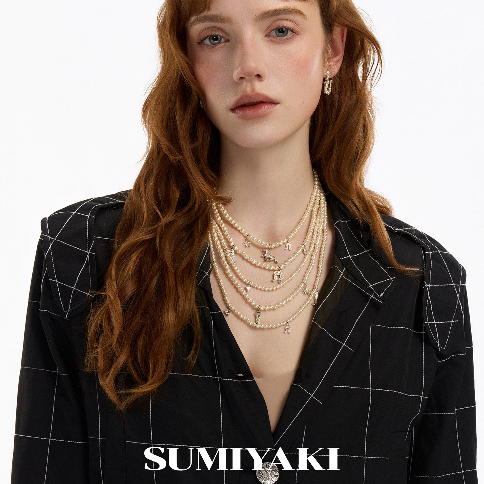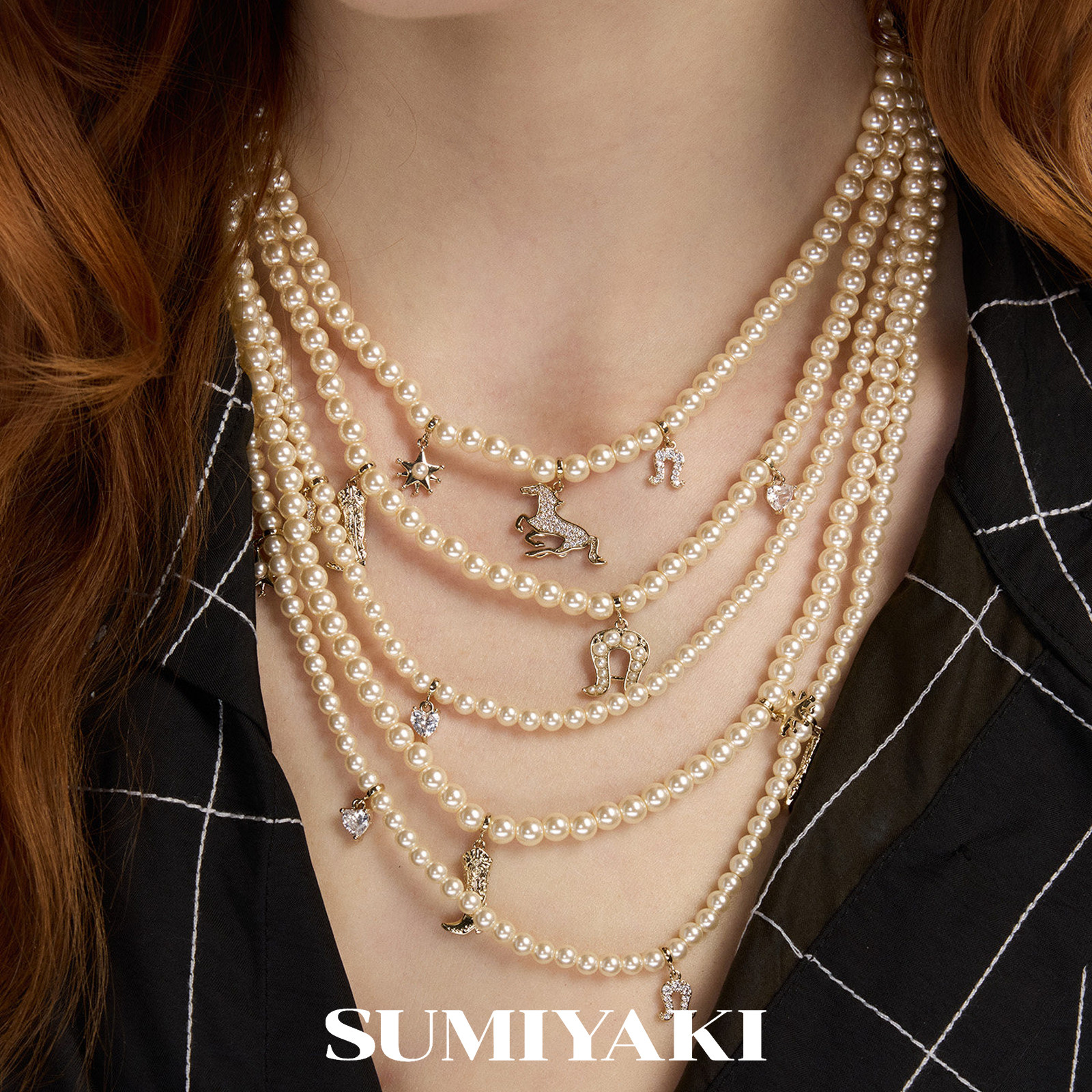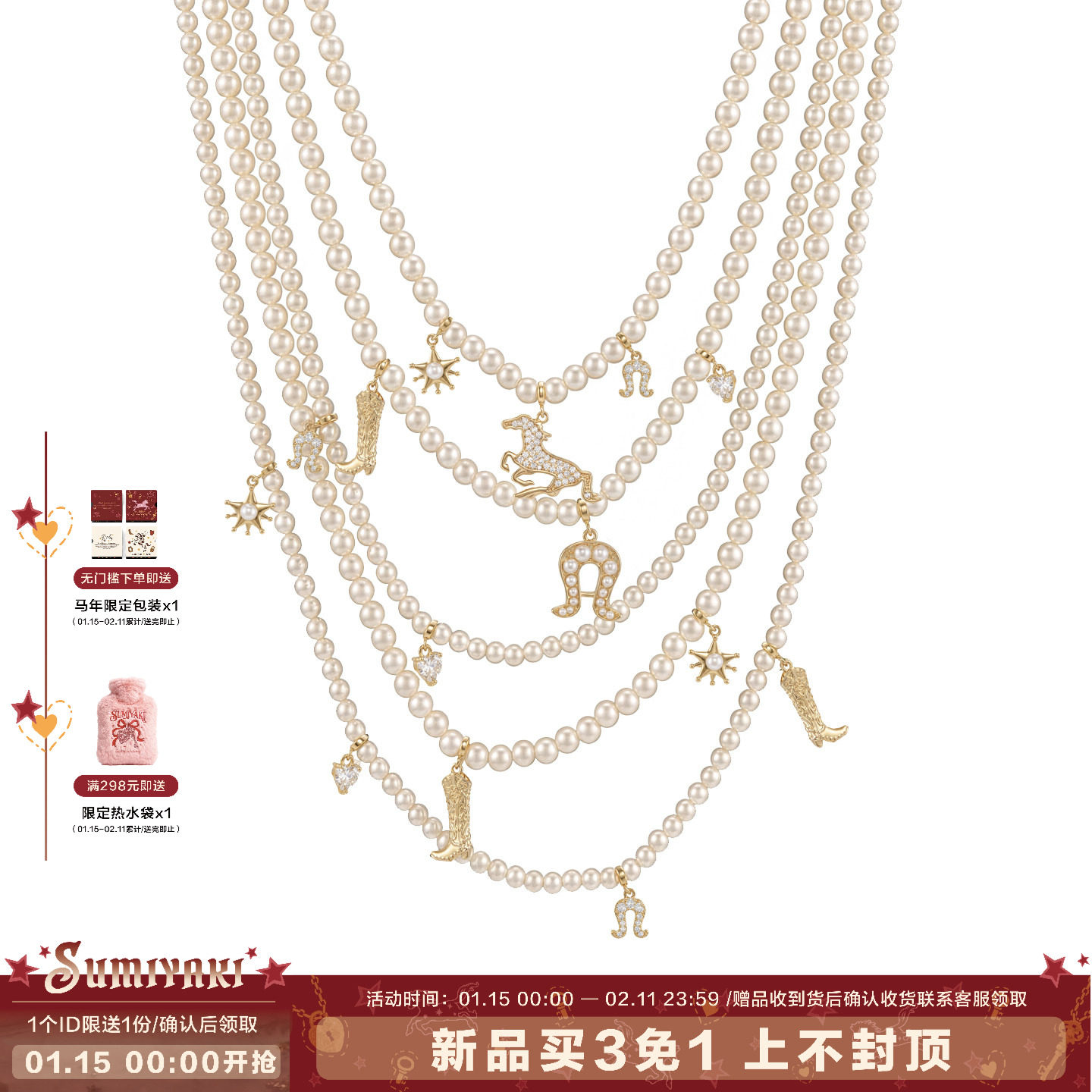 📚 年会必入!SUMIYAKI 马年系列 爆闪小马满钻马蹄扣多层珍珠项链女