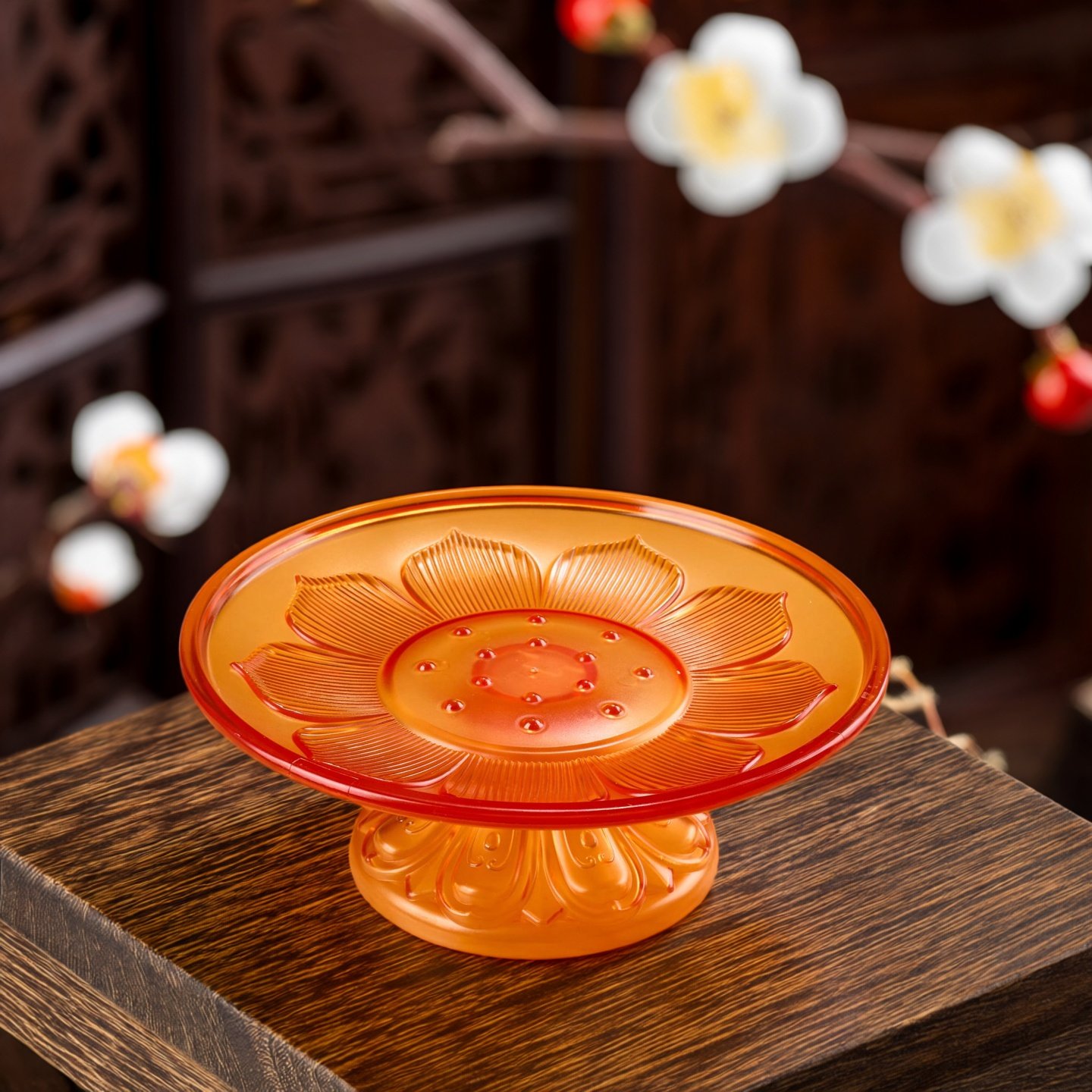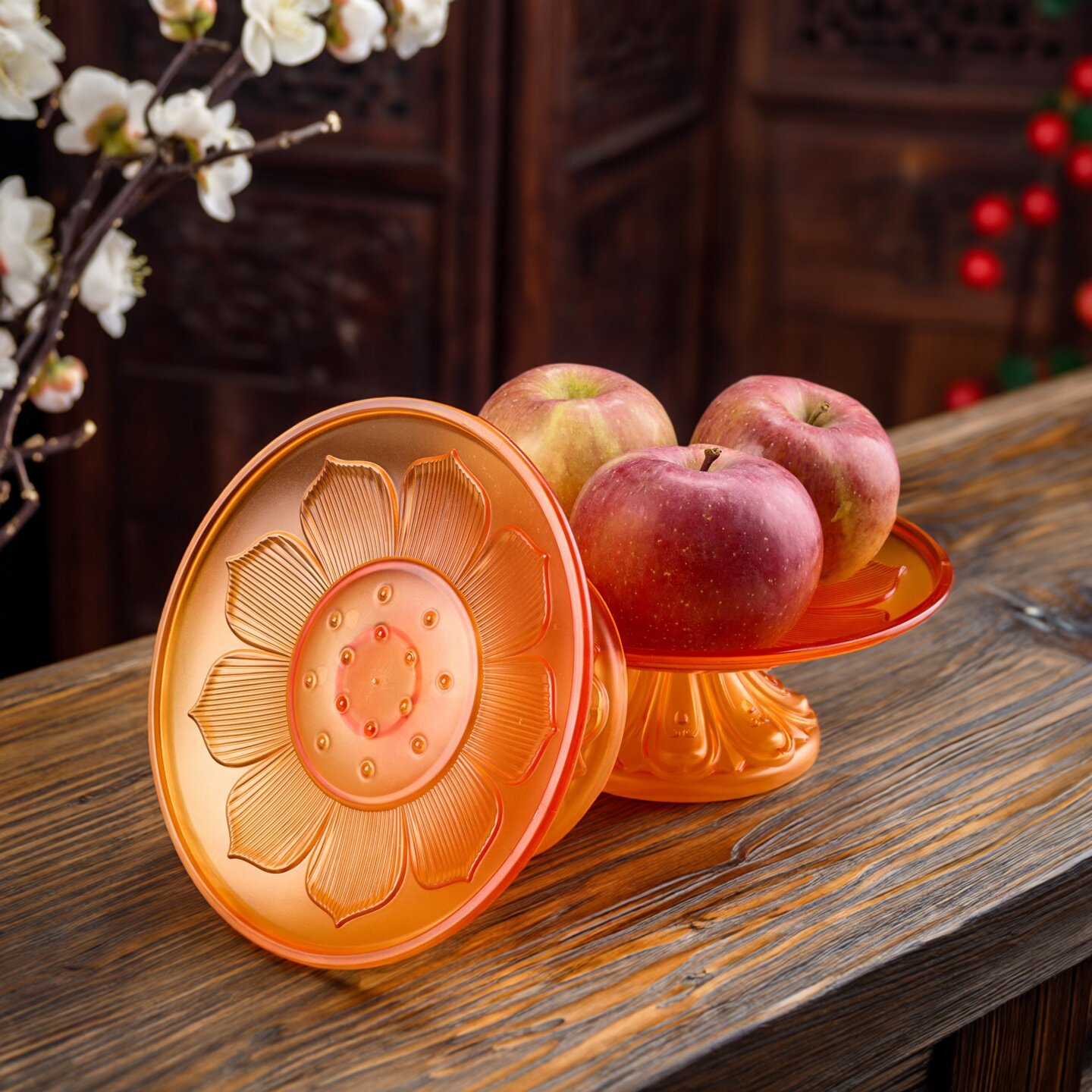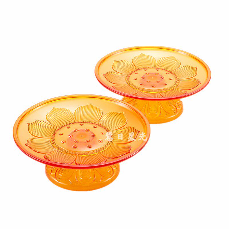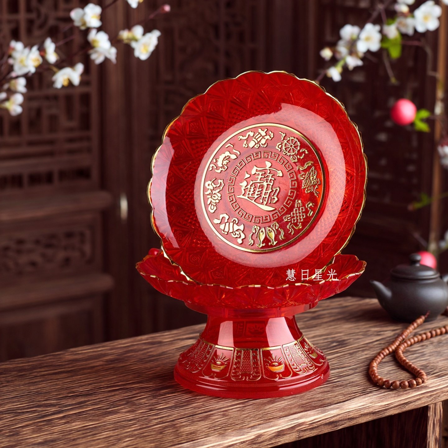 📚 新款加厚仿琉璃浮雕莲花供盘水果盘家用贡盘福字供果盘果碟摆件