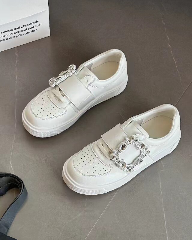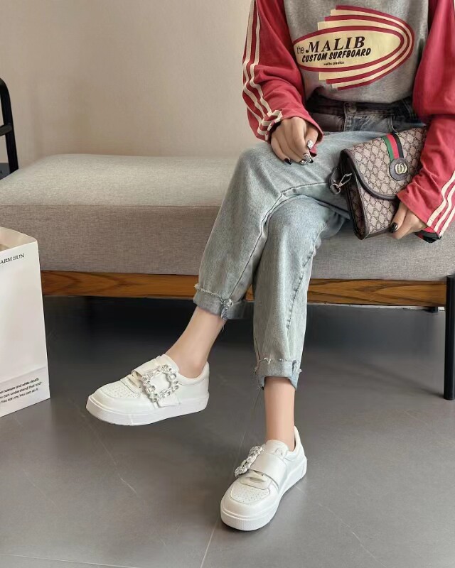 18¥ CA381 JKUfUMqefy0¥ https://m.tb.cn/h.7yYtKvR 真皮2024早秋款RV方扣水钻一脚蹬小白鞋厚底增高显瘦运动休闲板鞋 --------------------- 【原售价】198元 【现售价】198元。