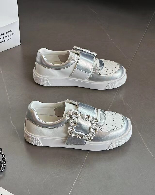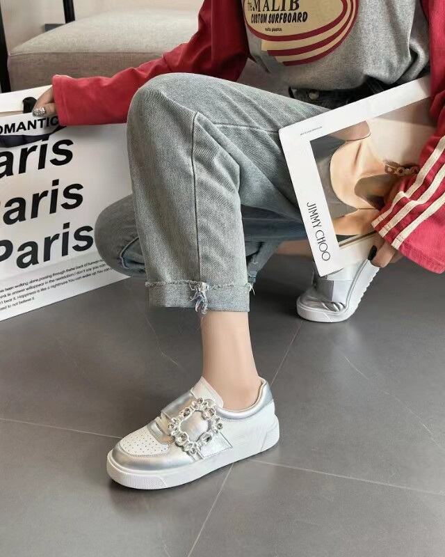 📚 真皮2024早秋款RV方扣水钻一脚蹬小白鞋厚底增高显瘦运动休闲板鞋