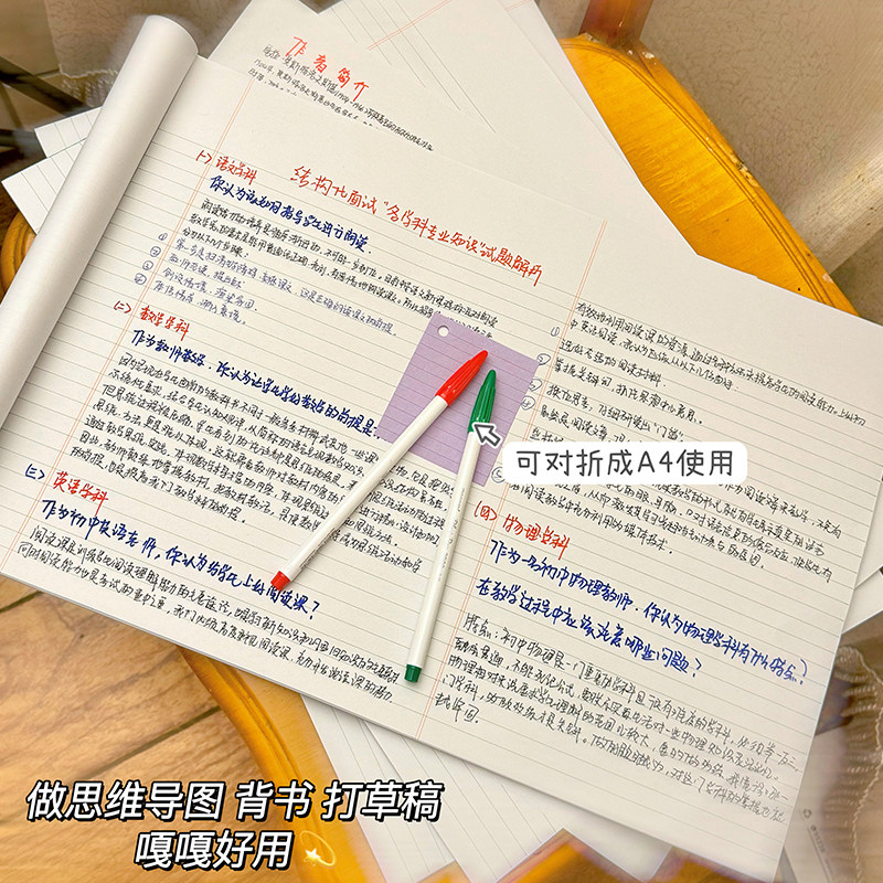 📚 A3美式横线拍纸本思维导图薄脆纸草稿纸练习纸横版英语A4刷题本子