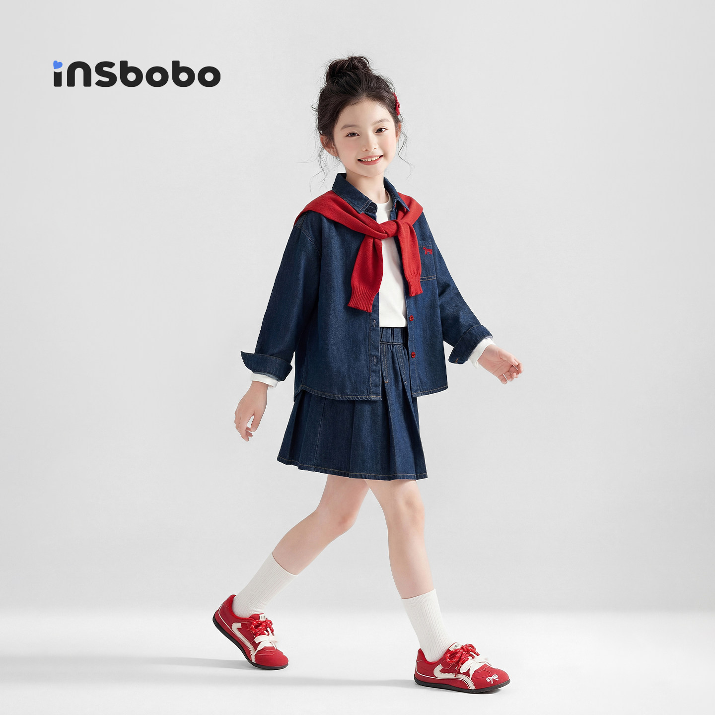 📚 INSbobo童装女童牛仔套装2026春装儿童外套百褶裙女孩衣服中大童