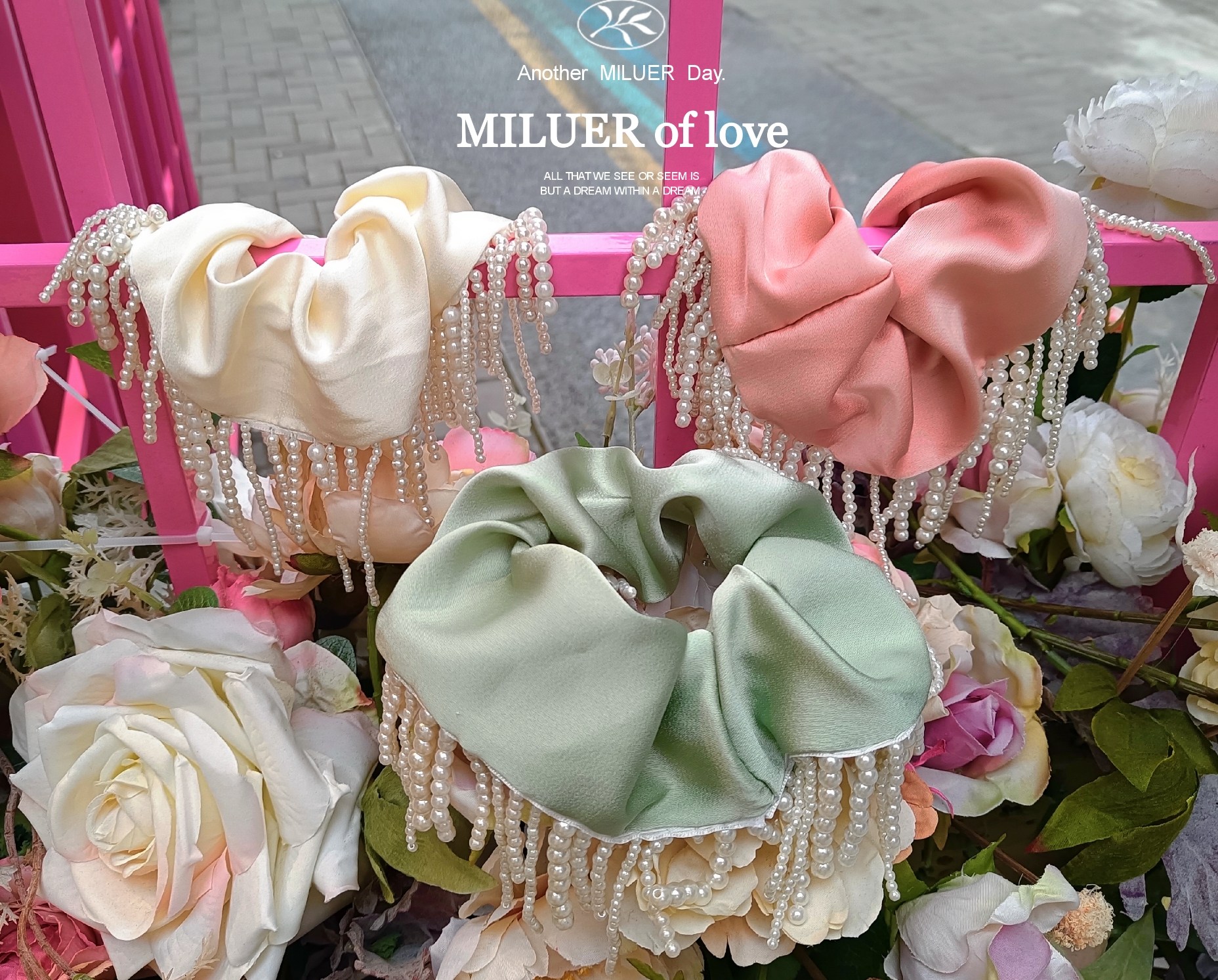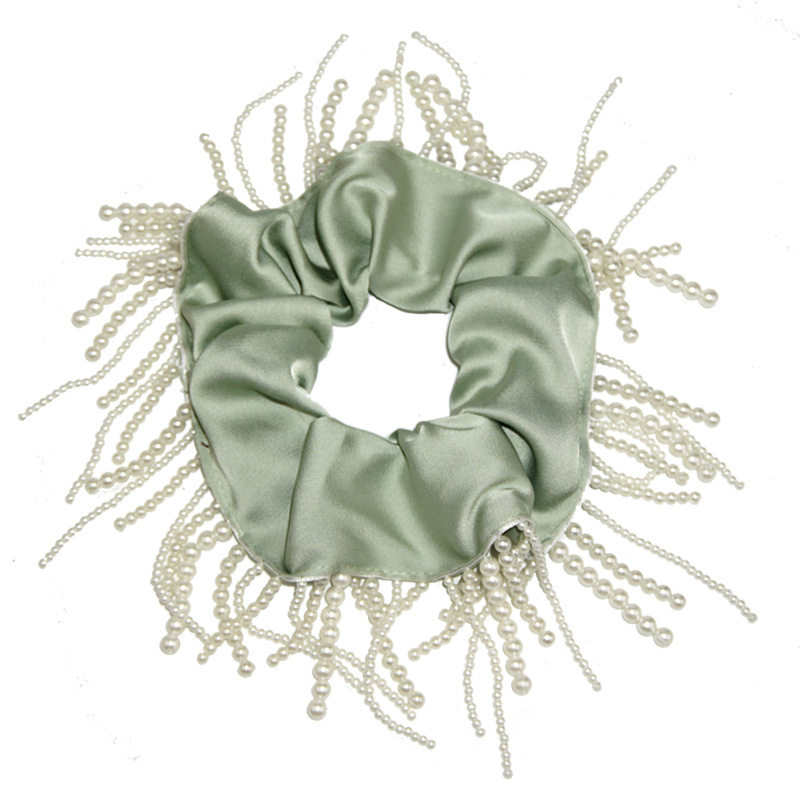 📚 超仙丝绸发圈华丽流苏珍珠头绳温柔气质设计感发饰重工大肠圈i夏