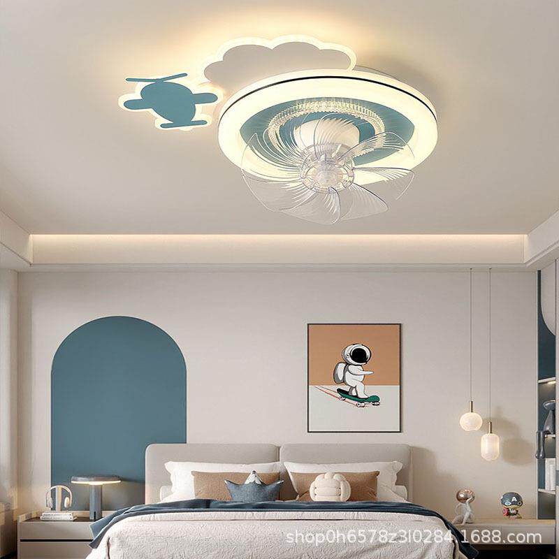 📚 智能儿童风扇吸顶灯一体电风扇摇头卧室创艺卡通男孩房间护眼光谱
