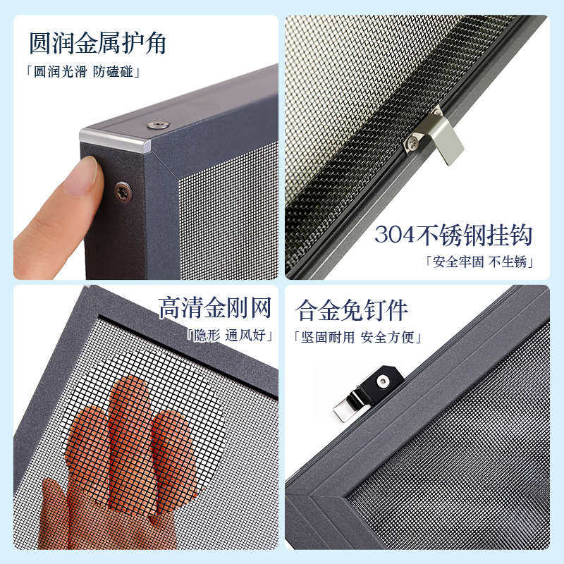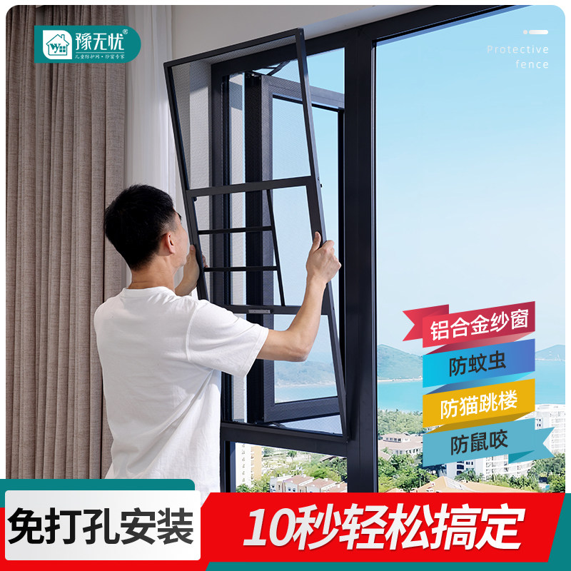 📚 纱窗防护栏一体三段式定制防蚊防盗窗免打孔窗户铝合金自装金刚网