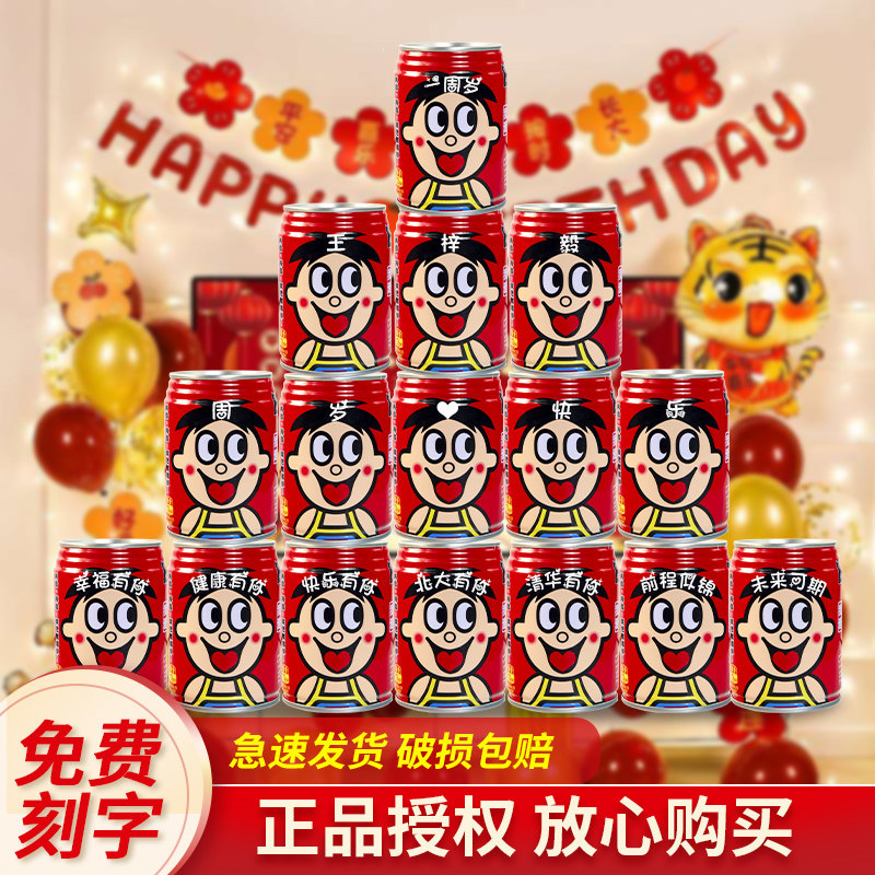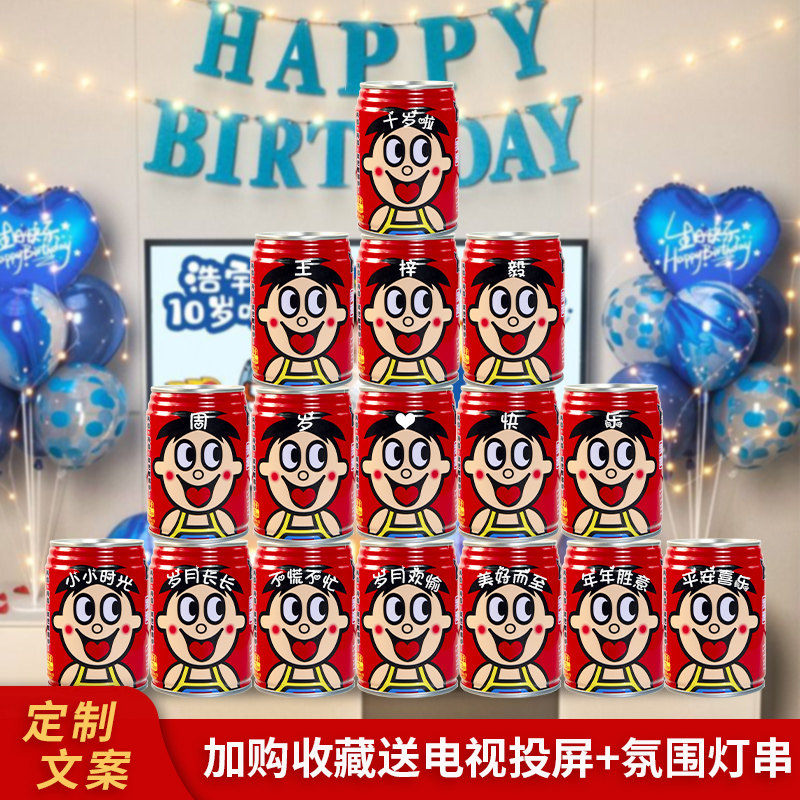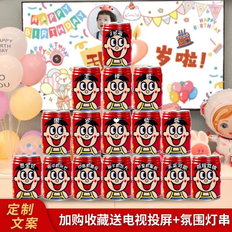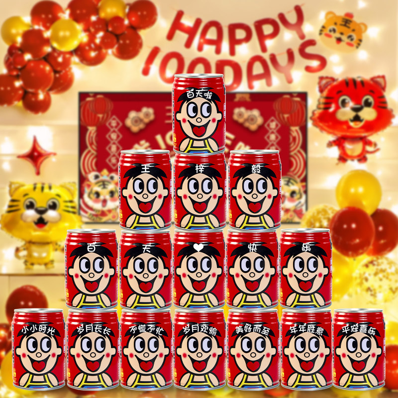 📚 旺仔牛奶刻字定制宝宝周岁生日饮料布置可乐装饰贴纸男一礼物百天