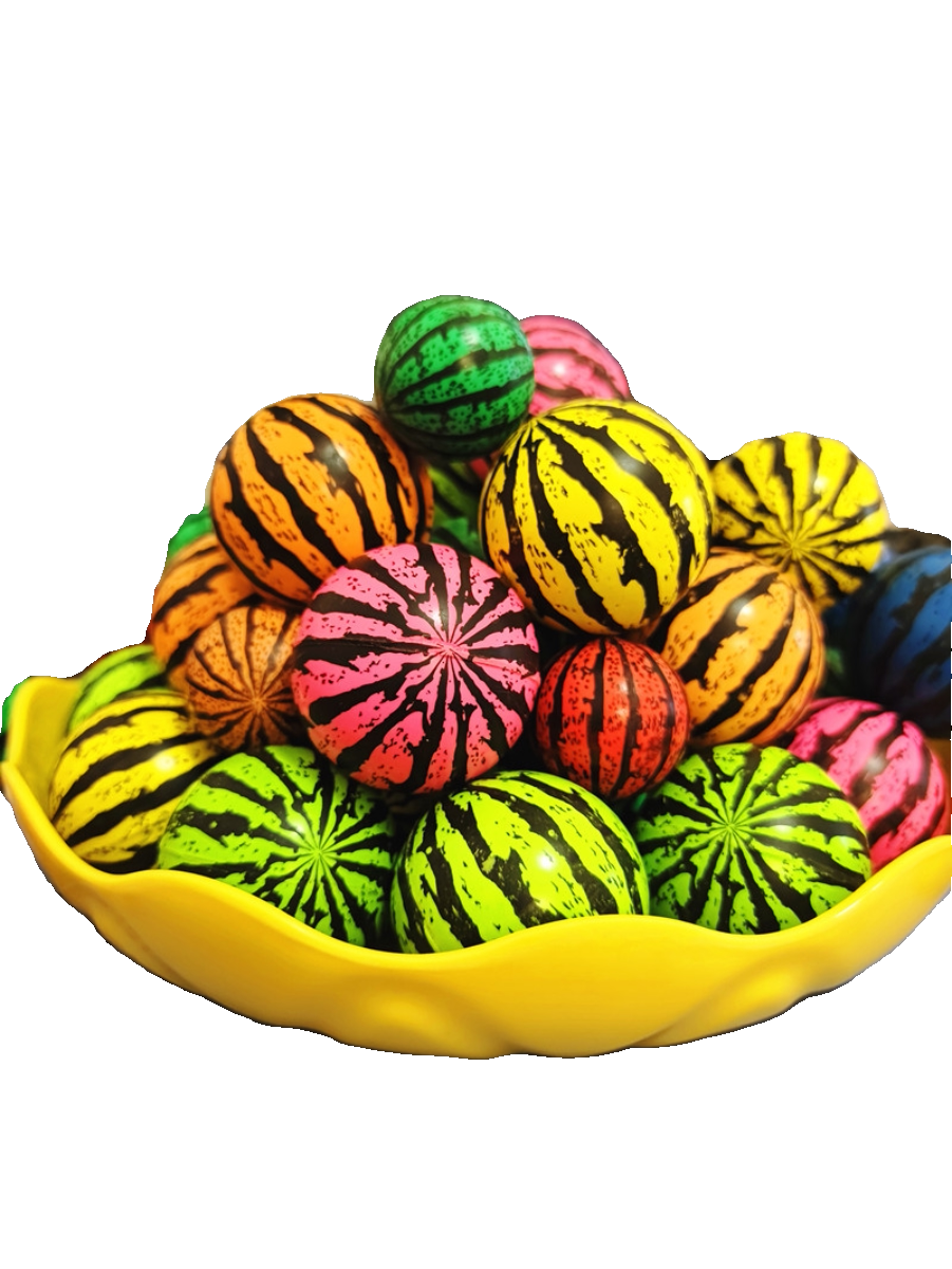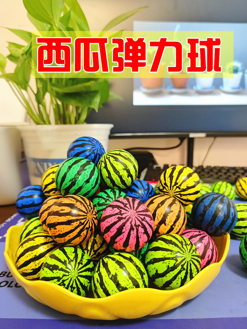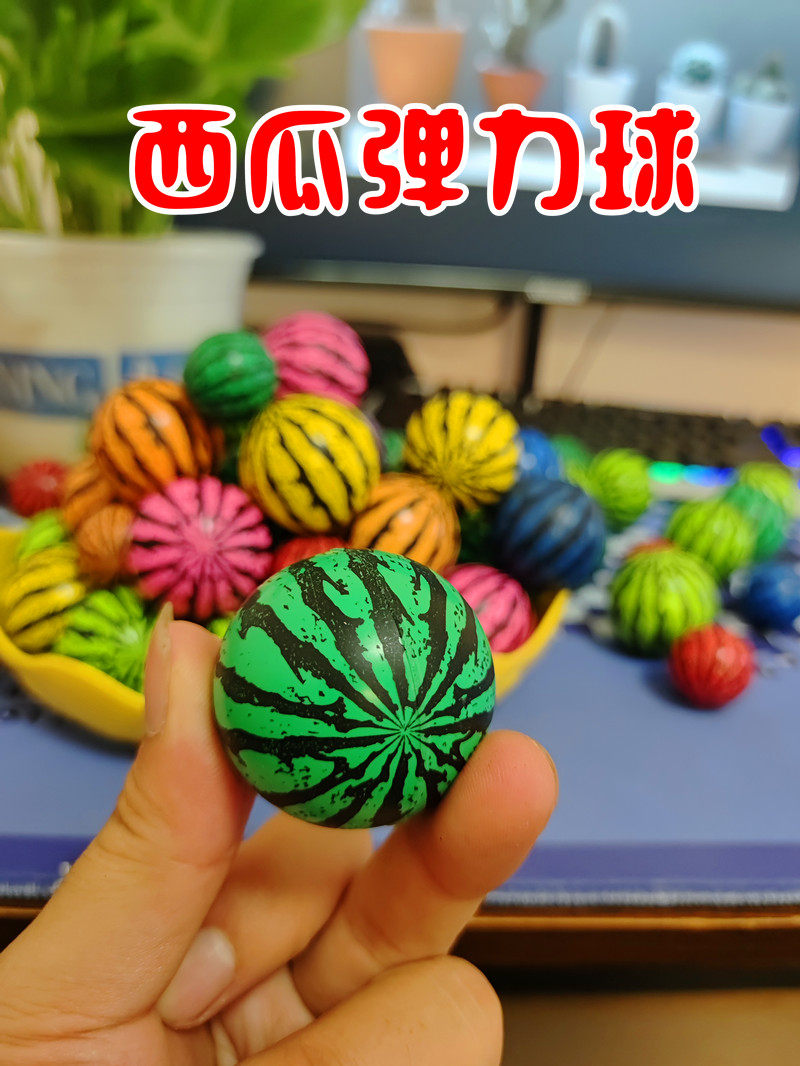 📚 彩西瓜弹力球实心跳跳球27号32号45号扭蛋机蹦蹦球回弹橡胶球玩具