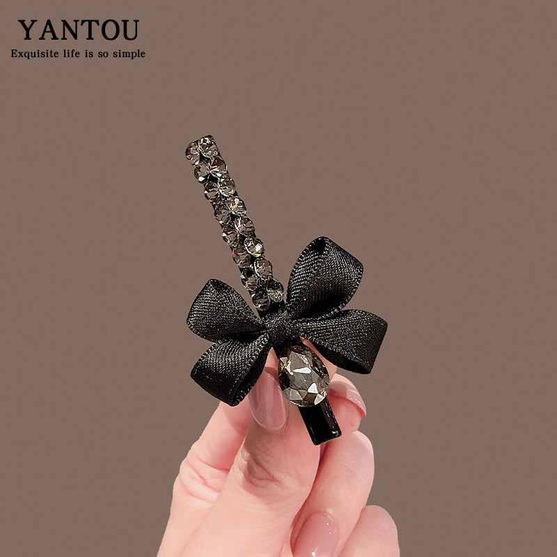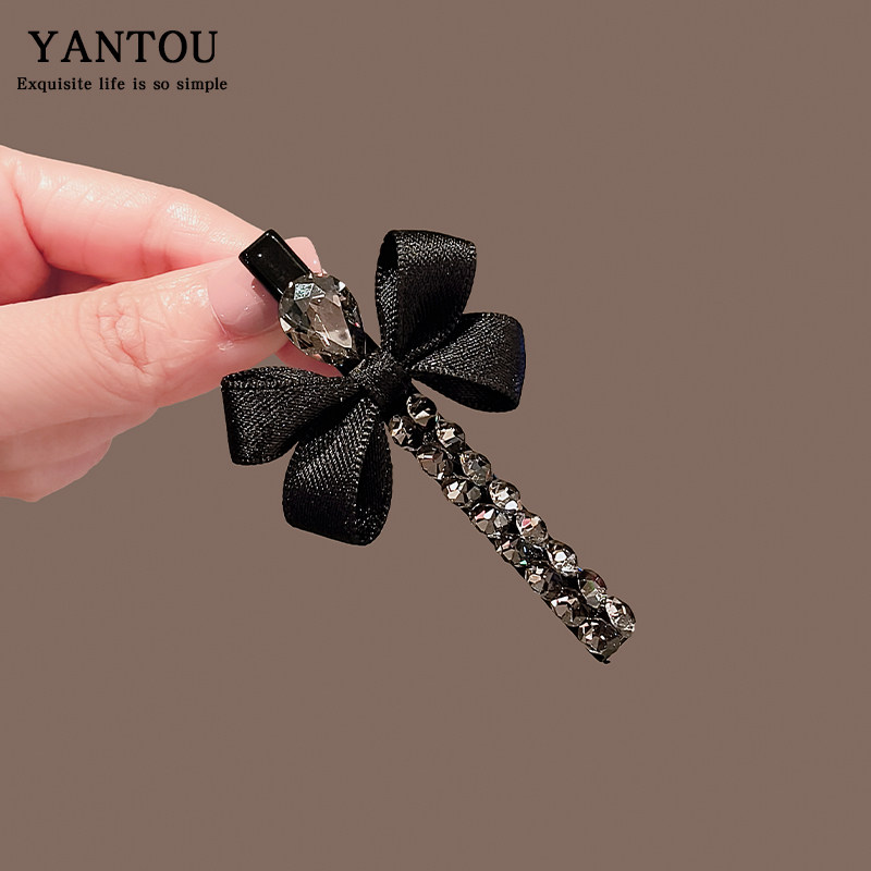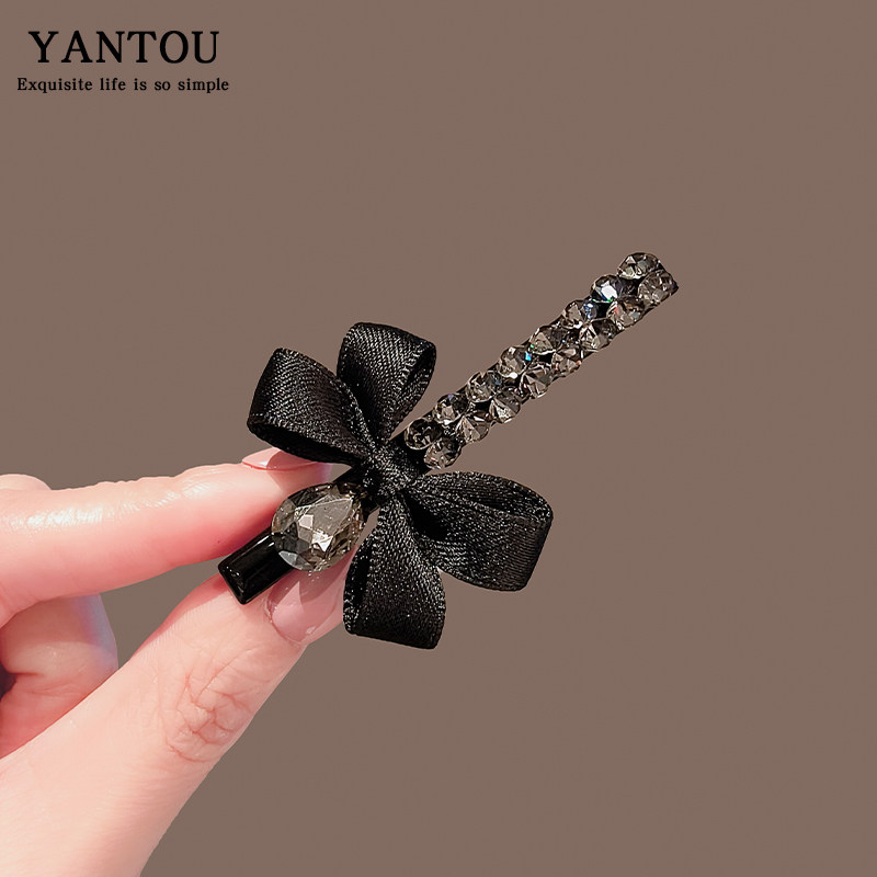 📚 甜美蝴蝶结水晶发夹女小众气质鸭嘴夹侧边刘海碎发夹子高级感发卡