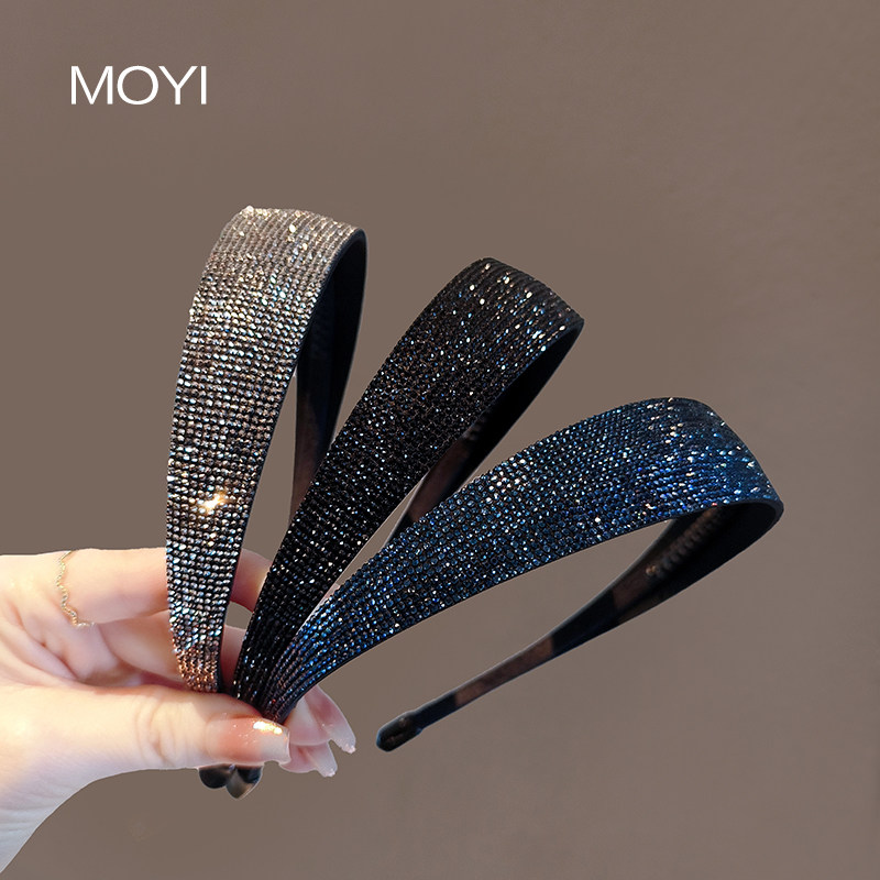 📚 高级感轻奢bulingbuling纯色水钻宽边头箍出勤洗脸压碎发头饰发箍
