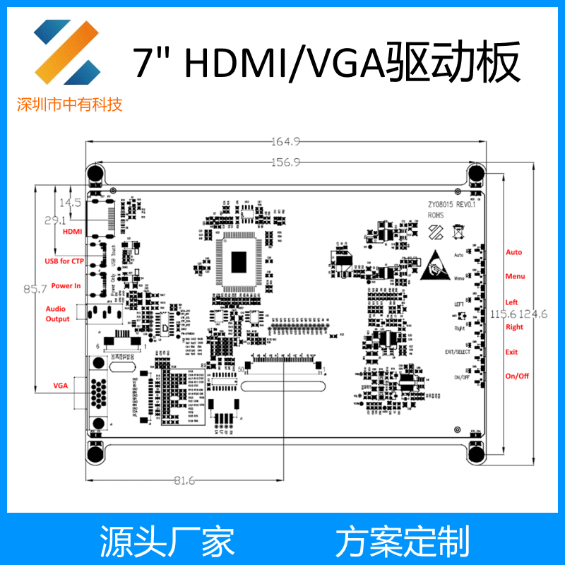 📚 7寸RTD2660H HDMI显示驱动板1024x600 LCD屏电容触摸屏 机箱副屏