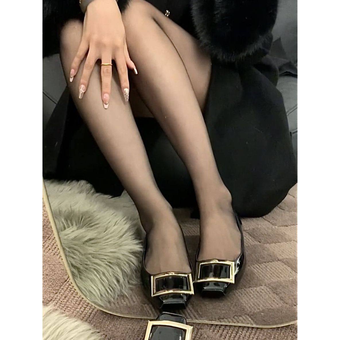 📚 2025年新款rv方扣方头漆皮平底鞋浅口高跟鞋新款女鞋平底通勤单鞋