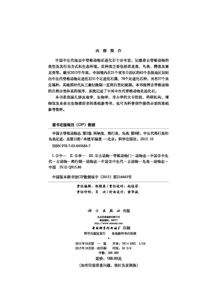 📚 现货中国古脊椎动物志第二卷 两栖类 爬行类 鸟类 中生代爬行类喝鸟类足迹李建军 科学出版社