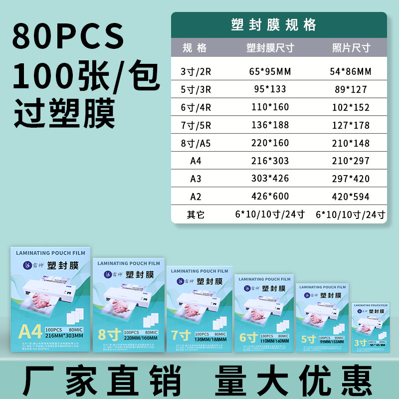 📚 过塑膜塑封膜过胶膜雷盛过塑机A4过塑膜菜单塑封膜8丝8C/80mic相片照片文件膜护卡膜过胶膜热封膜100张/包