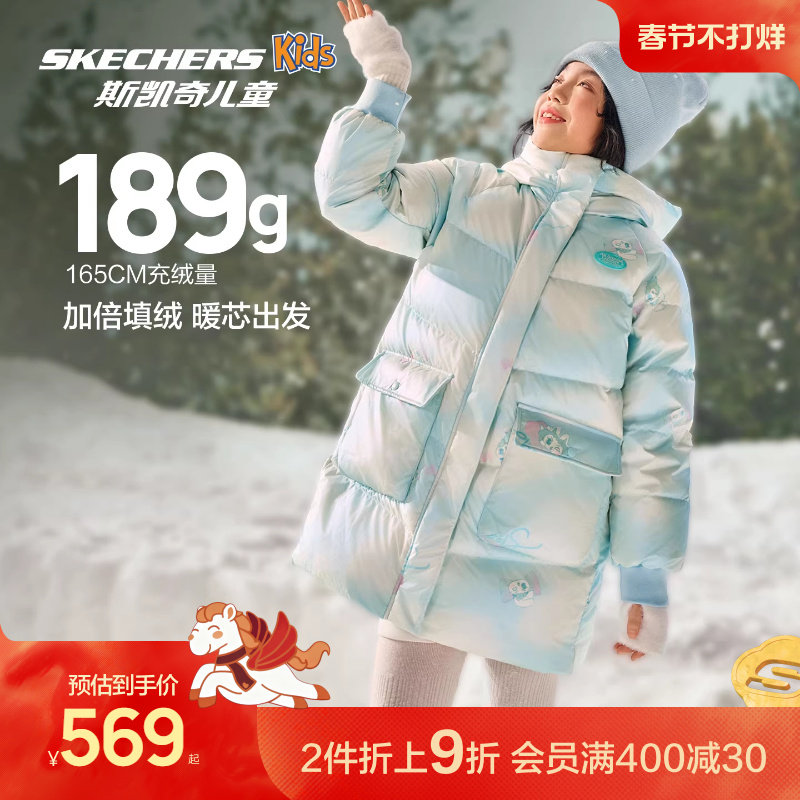 📚 Skechers斯凯奇女童中长羽绒外套冬季童装儿童时尚渐变保暖羽绒服