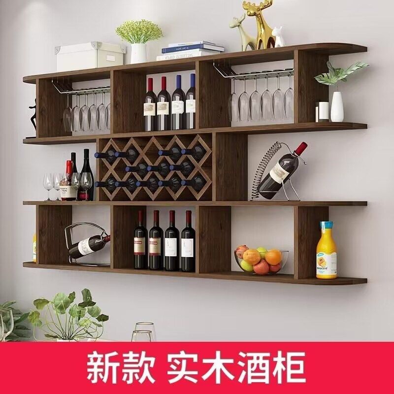 📚 全实木酒架e酒柜置物架网红壁挂客厅墙上装饰架多层红酒架子餐厅