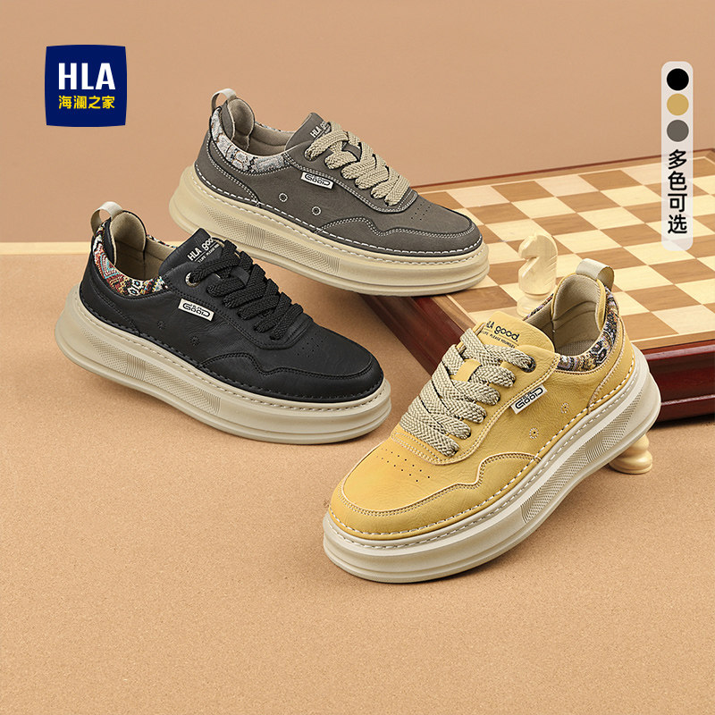 📚 HLA/海澜之家男鞋2025新款男士板鞋厚底增高经典百搭透气休闲鞋男