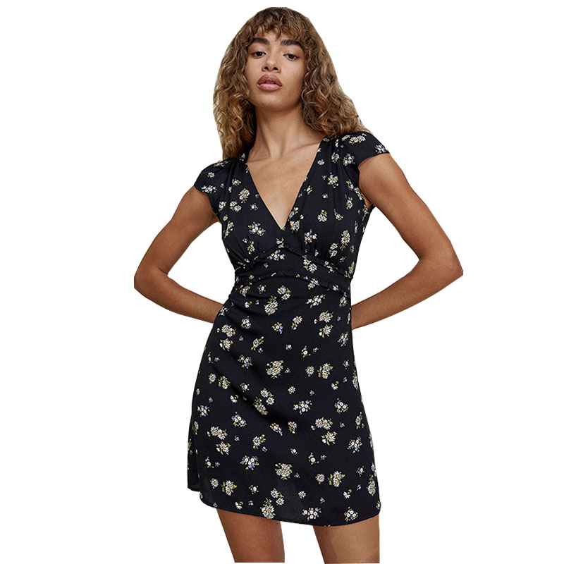 📚 归己/reformation连衣裙女夏季新款法式V领短袖雏菊碎花显瘦女