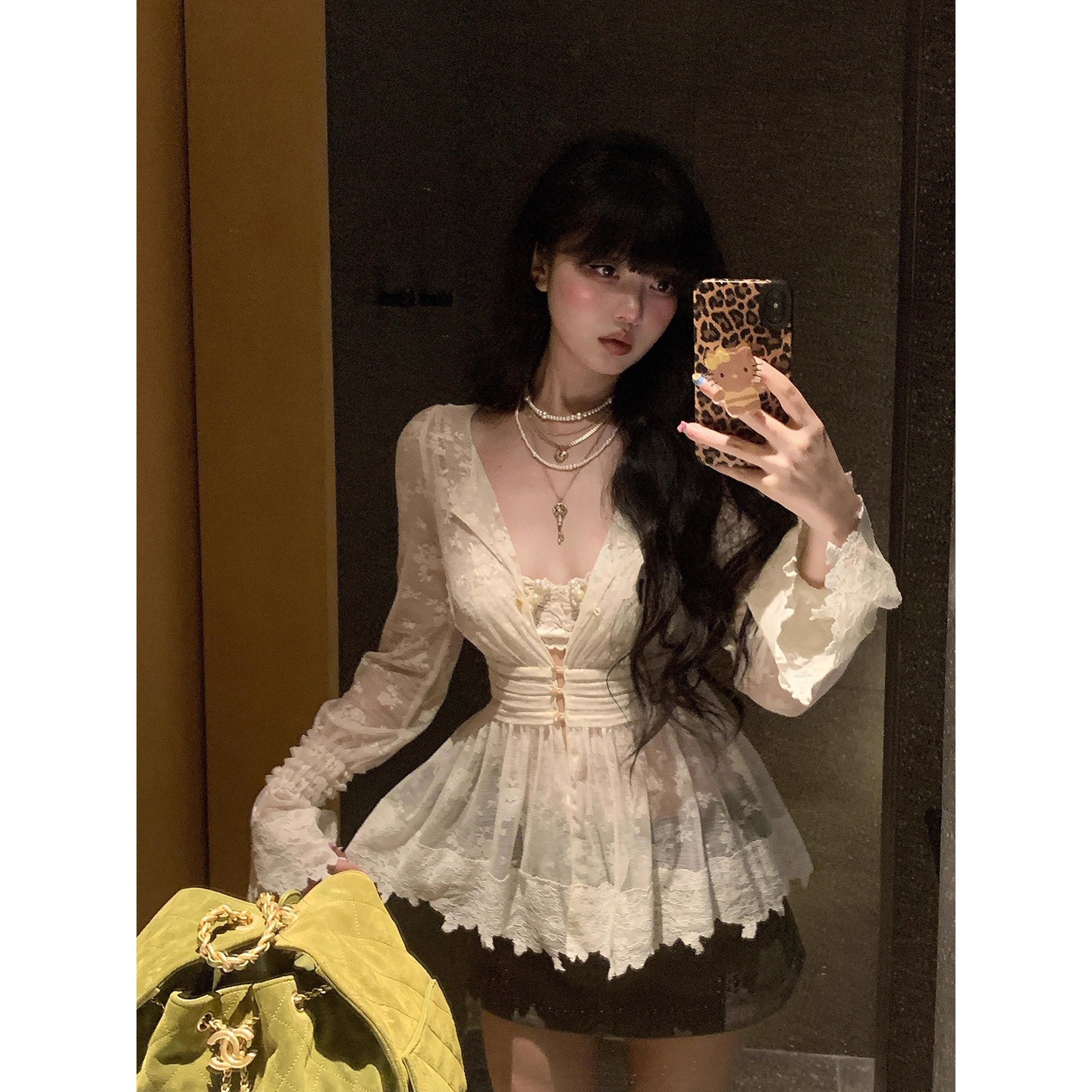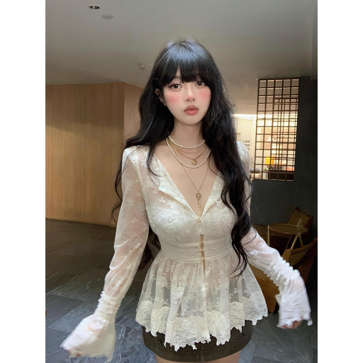 📚 蕾丝圣典巴洛克藤蔓微透V领收腰显瘦长袖衬衫上衣