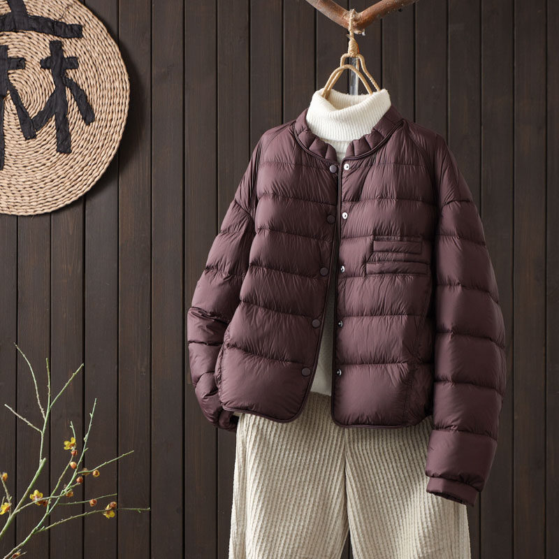 📚 轻薄简约羽绒服女2025冬季时尚新款欧货木耳领90鸭绒短款保暖外套