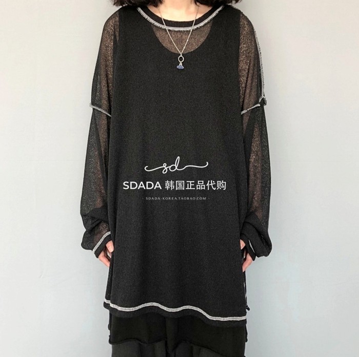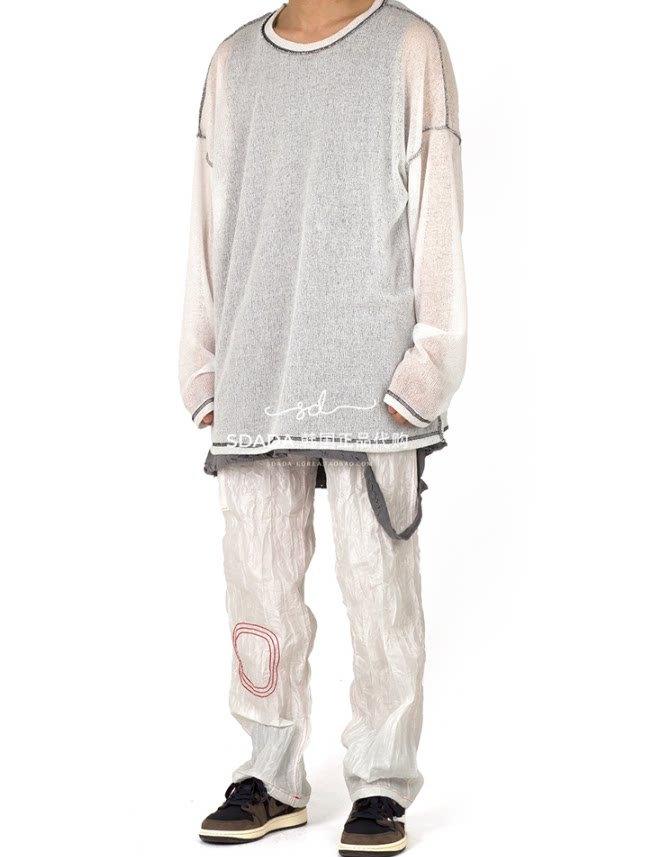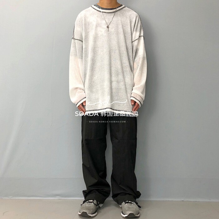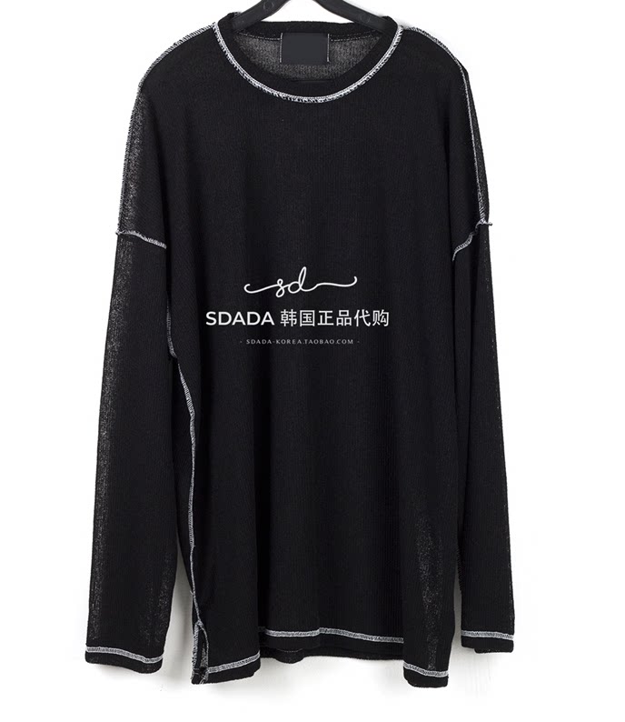 📚 韩国代购20SS LIGHT MESH OVERLOCK LONG SLEEVE 薄款拼色扎线长T