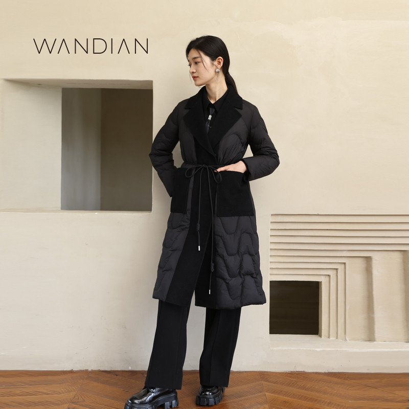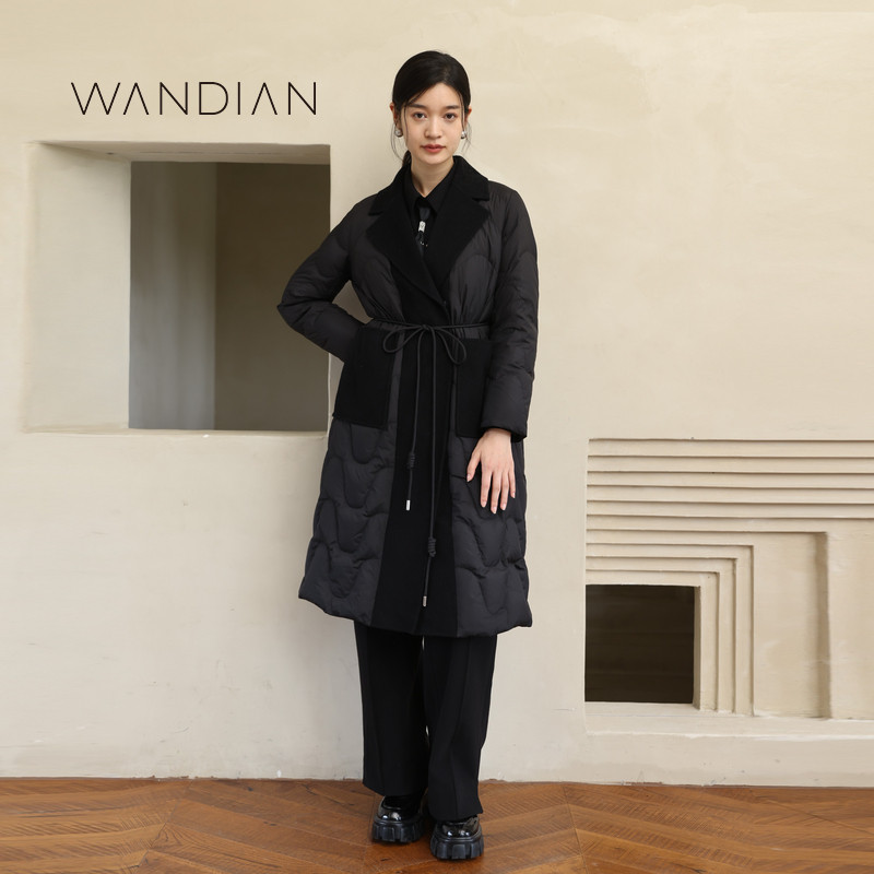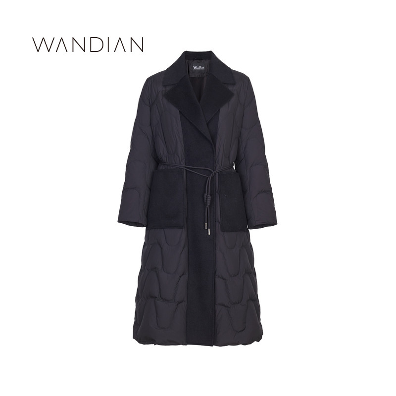 📚 婉甸冬季黑色长款绗缝中长款女系腰带双面呢羽绒服1234D21RX3