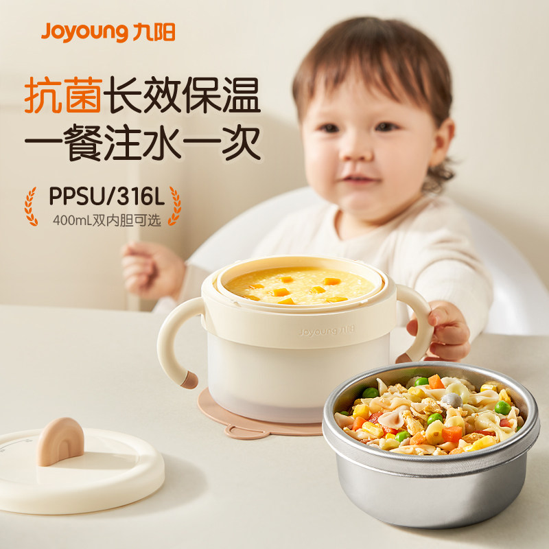 📚 九阳PPSU宝宝辅食碗注水保温婴幼儿专用米粉吃饭恒温不锈钢餐具