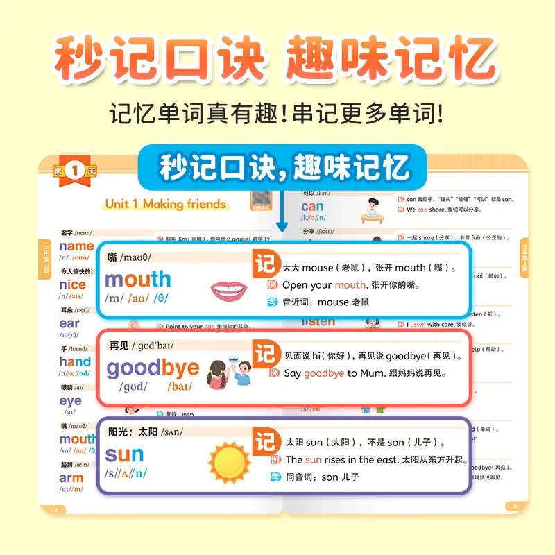 📚 贝丁兔 秒记小学英语单词 小学生必背单词速记手册人教版汇总大全一本通1到6年级 三到六年级 外研版三年级起点必备2000妙记 妙计